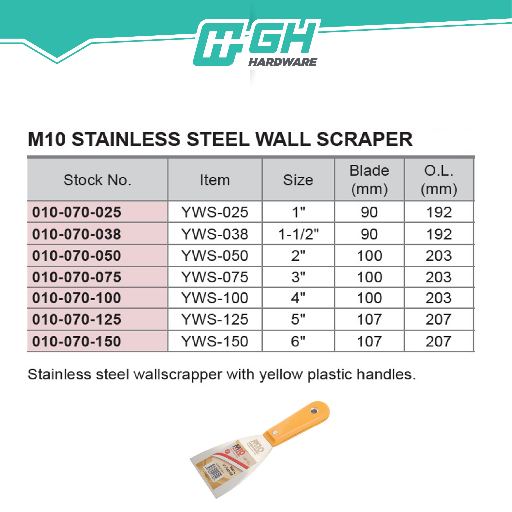 [ GH HARDWARE ] M10 High Grade Flex Stainless Steel Wall Scraper (Red) / Stainless Steel Wall Scraper (Yellow) - Inch