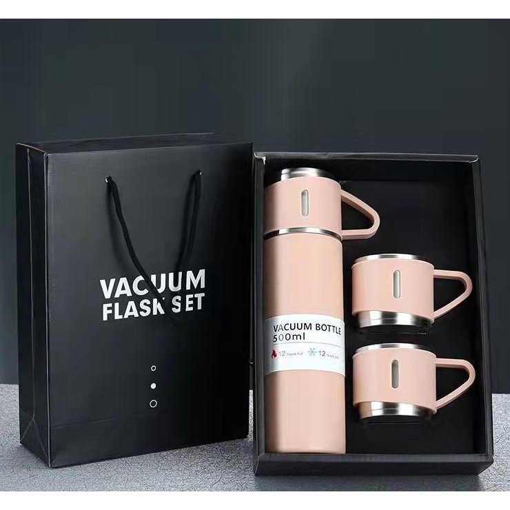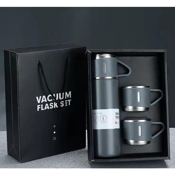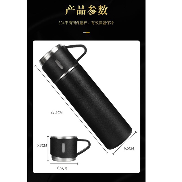 [ GIFT SET ] Vacuum Flask With Cup Set 500ml 304 Stainless Steel Thermos Flask Business Gift Water Bottle Outdoor Office