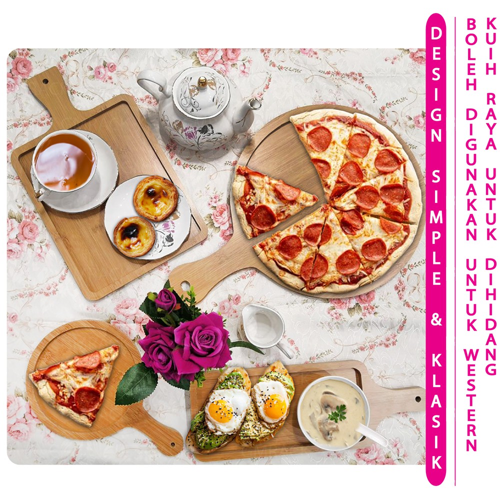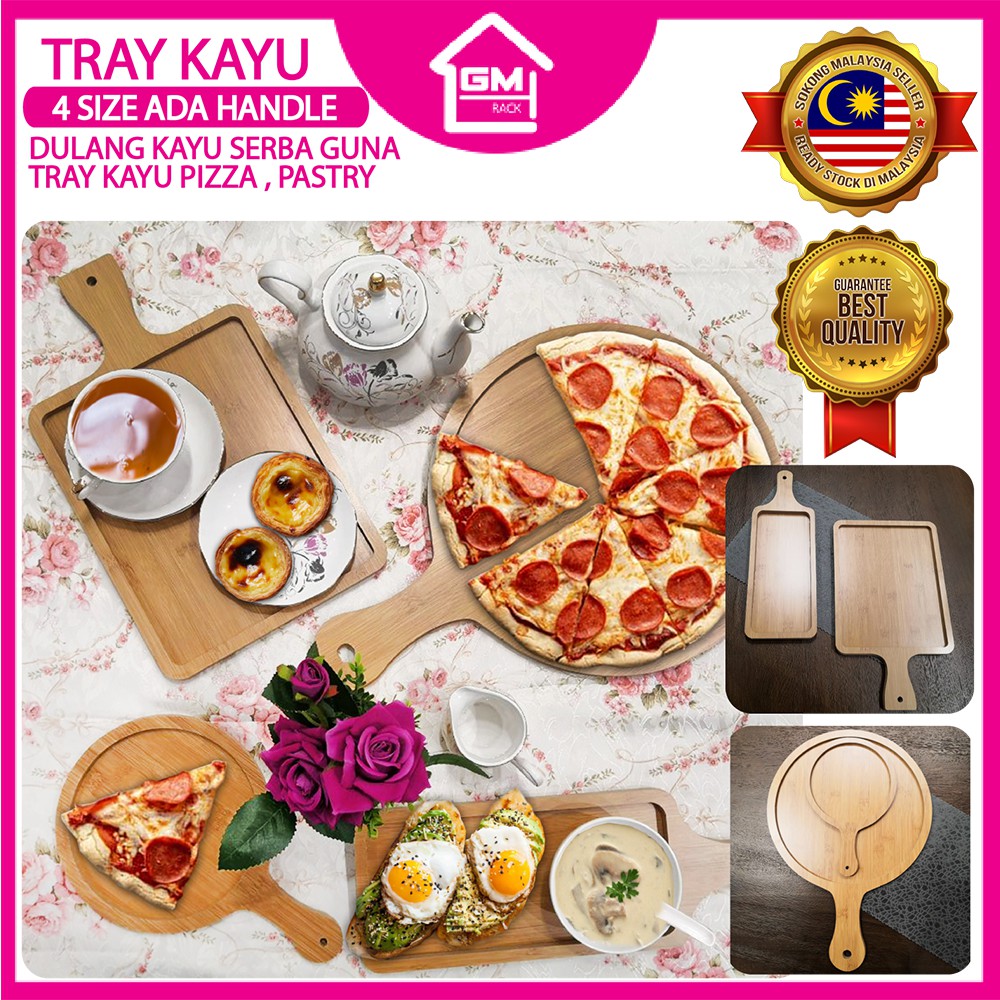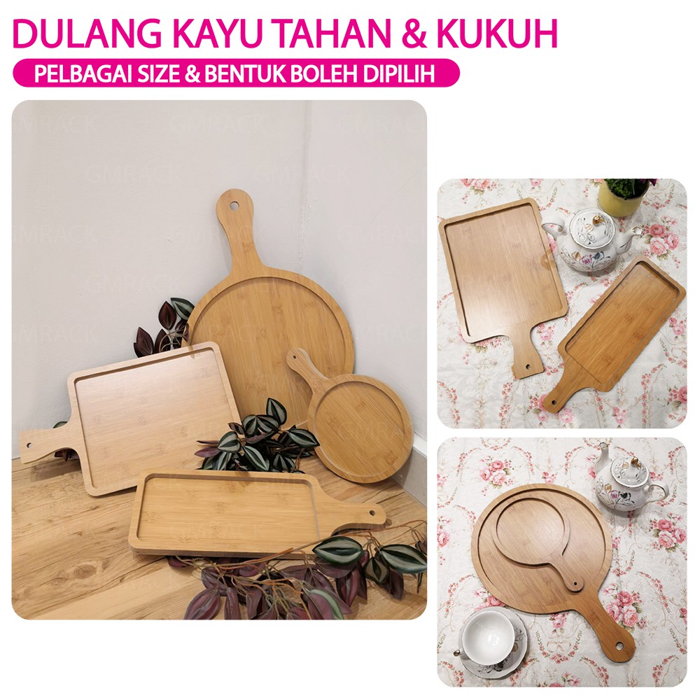 [GMRACK] DULANG KAYU PIZZA PIRING KAYU WOODEN PADDLE SERVING TRAY, ROUND PIZZA, RECTANGULAR PASTRY TRAY PAPAN PEMOTONG