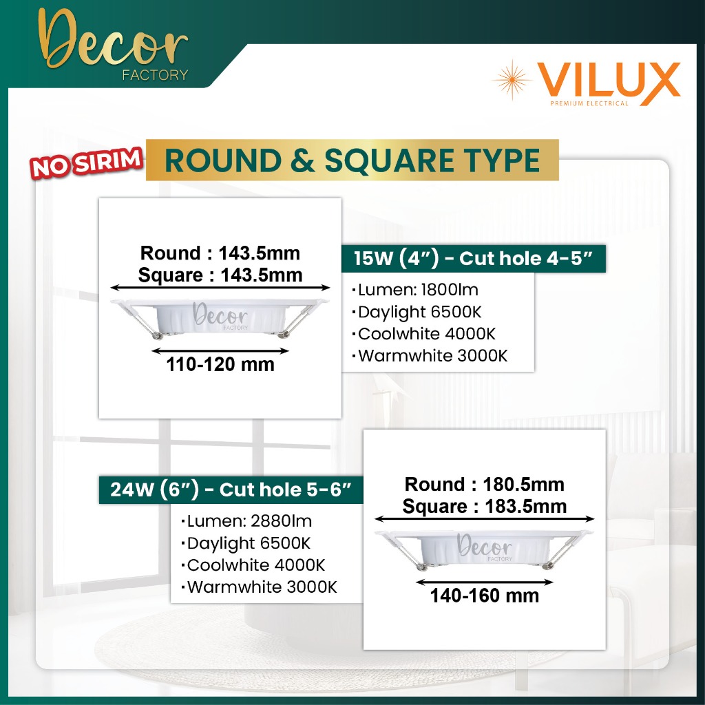 [GRADE A] LED Downlight 15W 24W 4Inch 6Inch Round Square Ultra Slim Recessed Downlight LED Ceiling Light Lampu Siling
