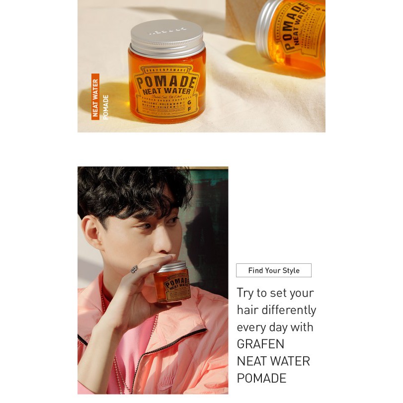 [GRAFEN] Neat Water Pomade 100g [For Thin and Damaged Hair, Soft Natural Finish, Orange Menthol Scent]
