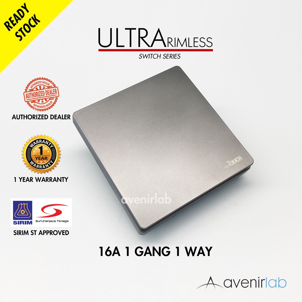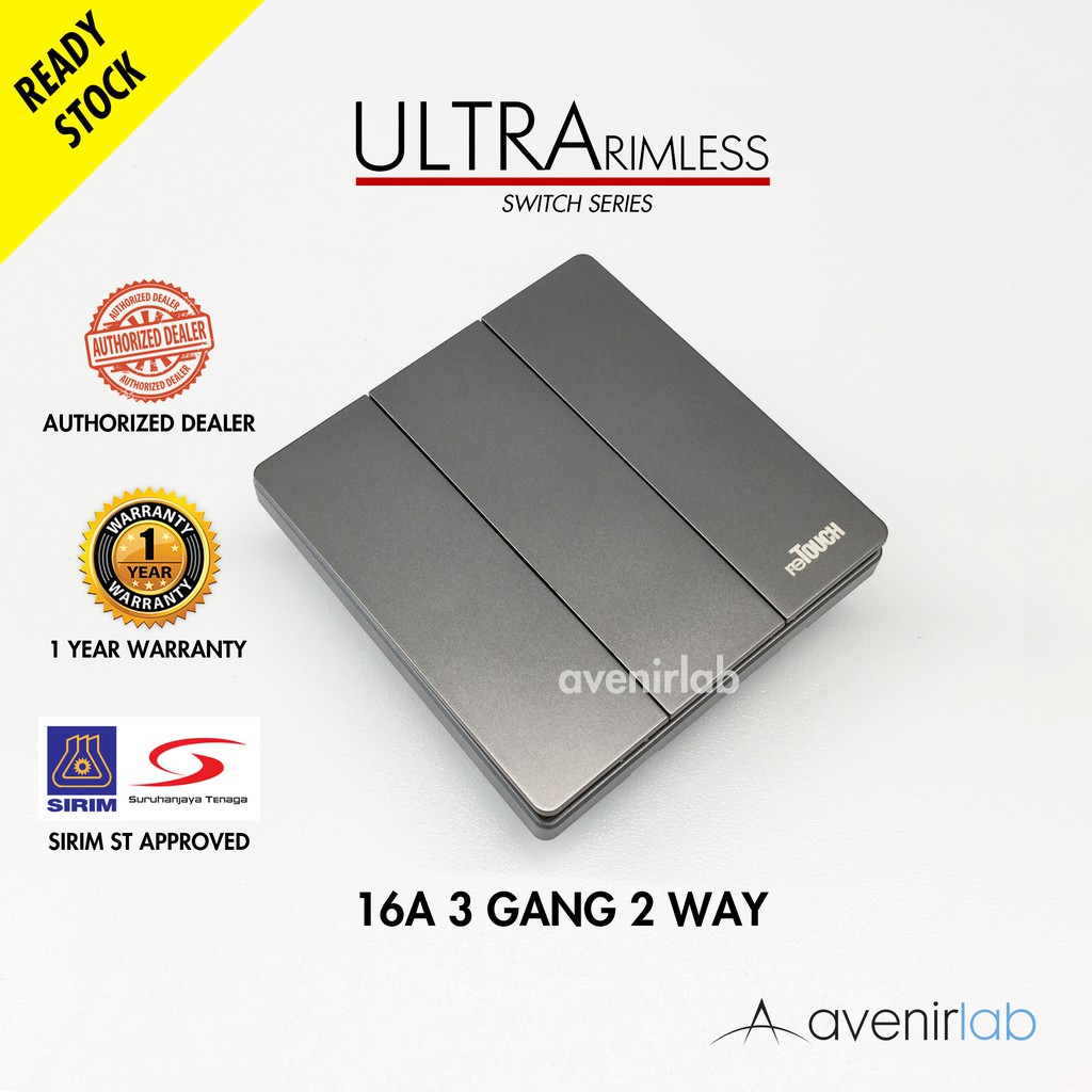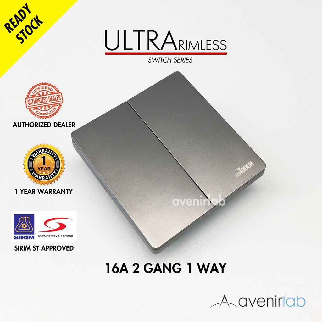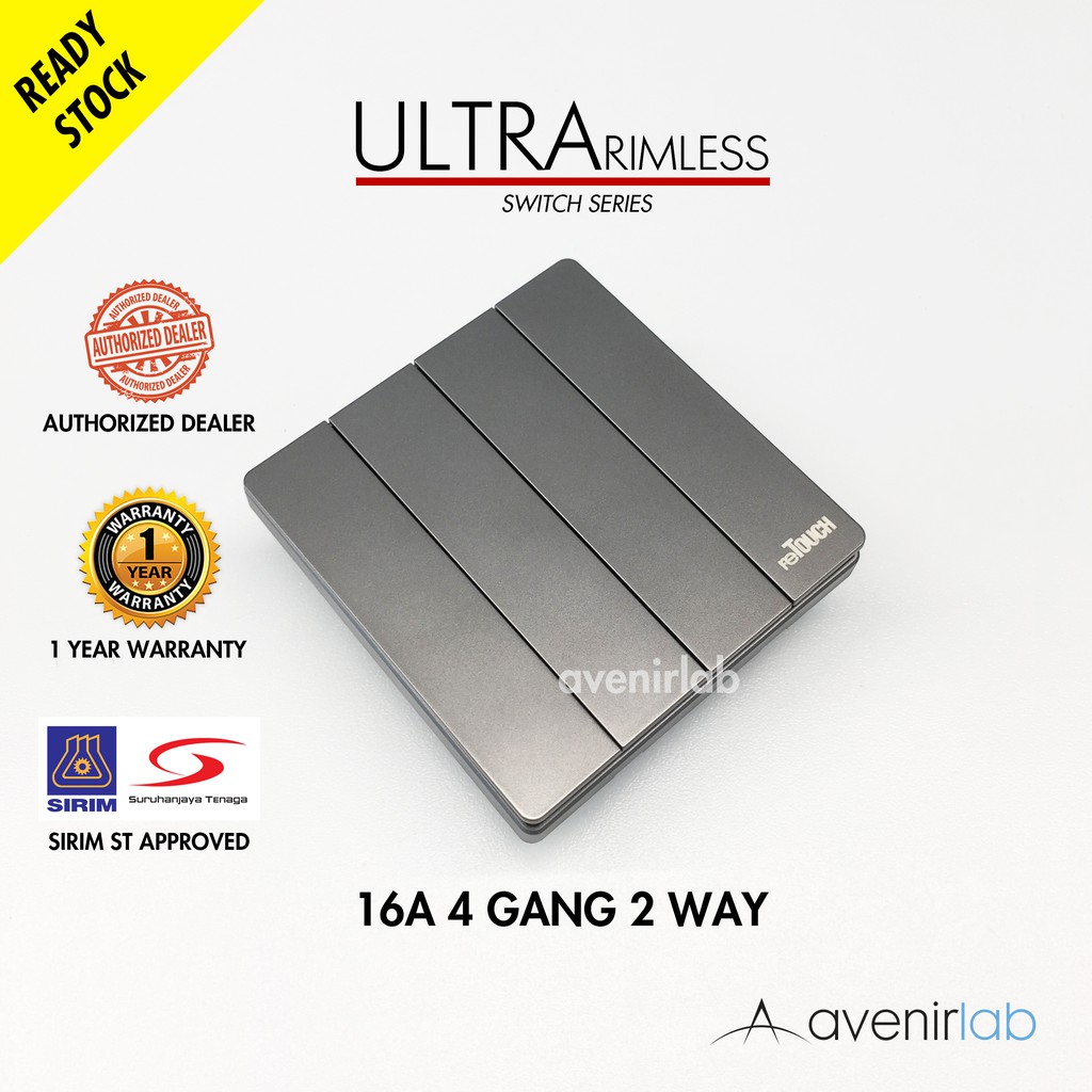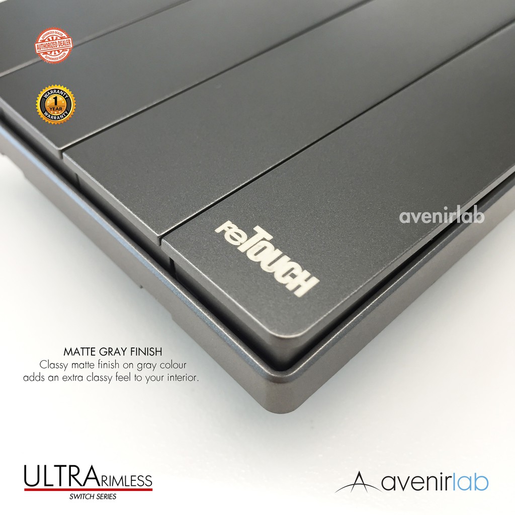 [GRAY] reTouch Ultra Rimless Switch 1/2/3/4 Gang 1/2Way Wall Switch 13A/15A Socket Waterproof Cover Frameless SIRIM