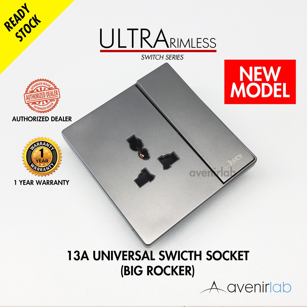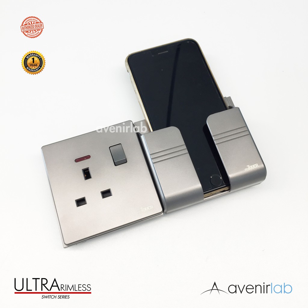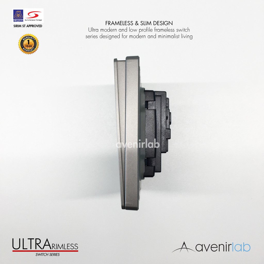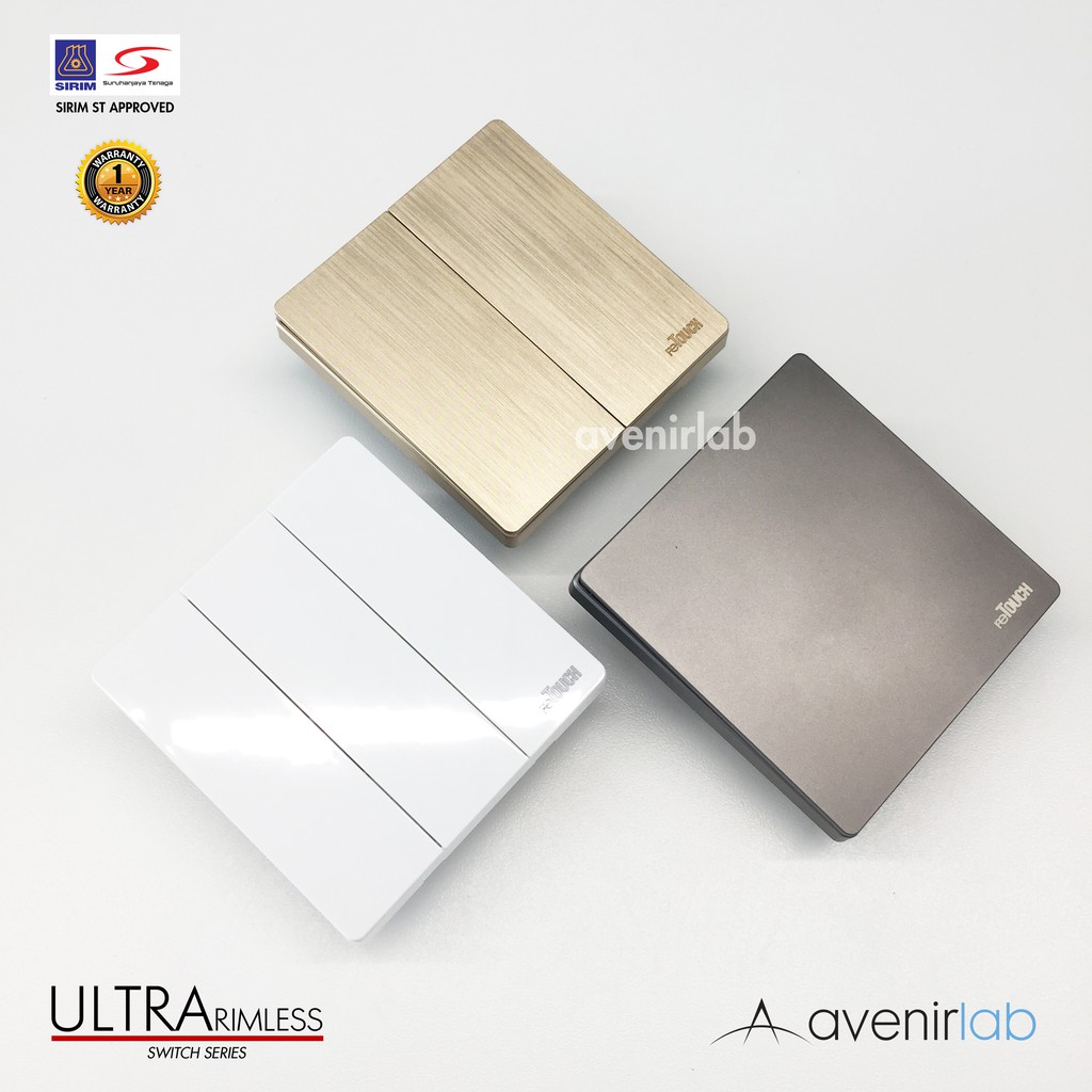 [GRAY] reTouch Ultra Rimless Switch 1/2/3/4 Gang 1/2Way Wall Switch 13A/15A Socket Waterproof Cover Frameless SIRIM