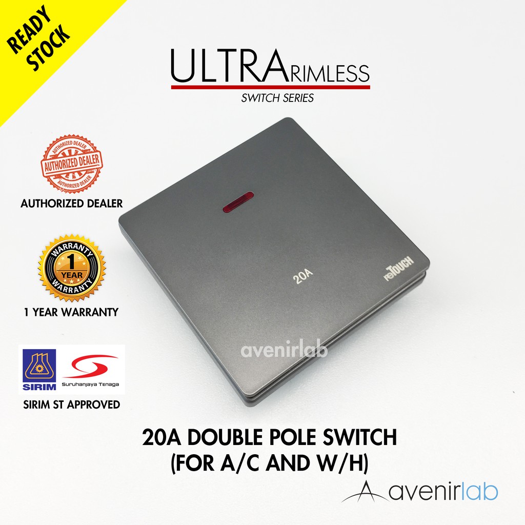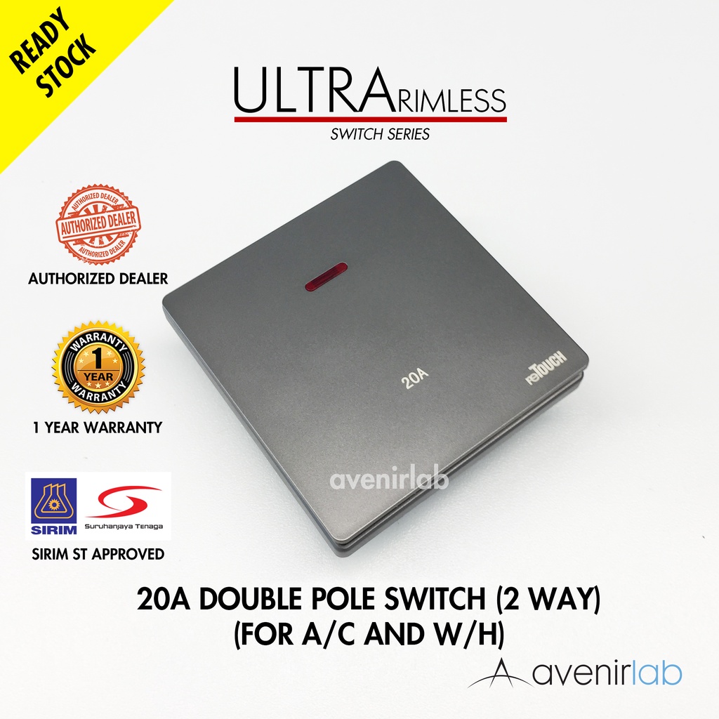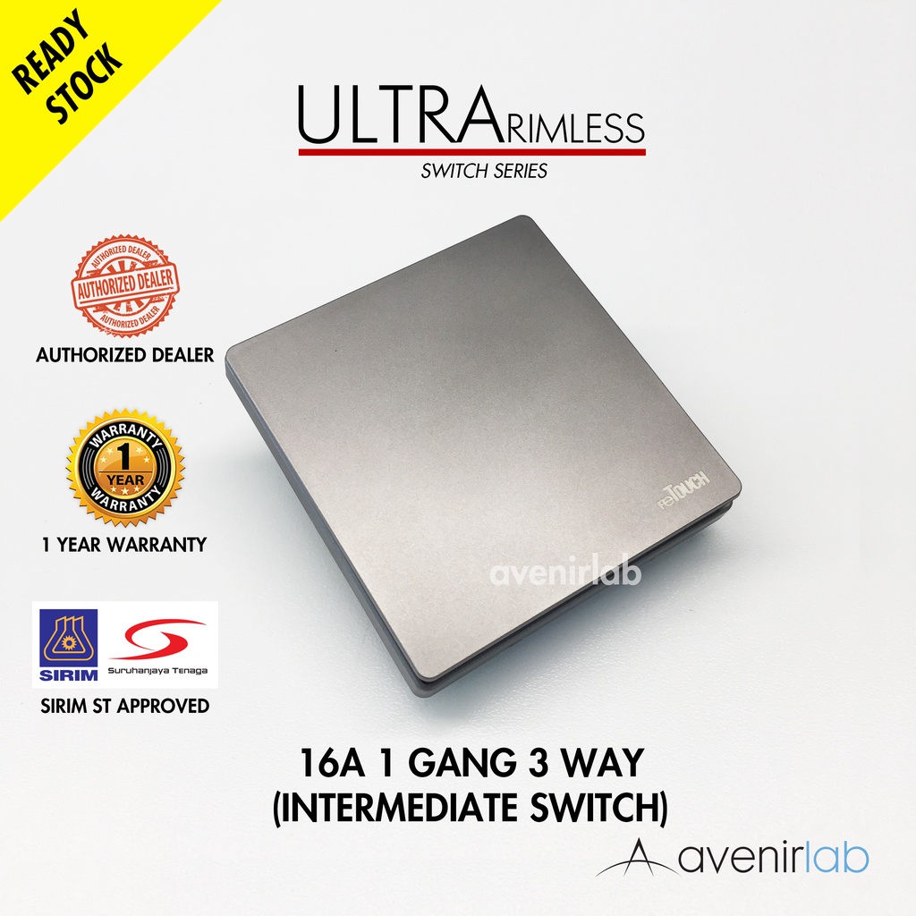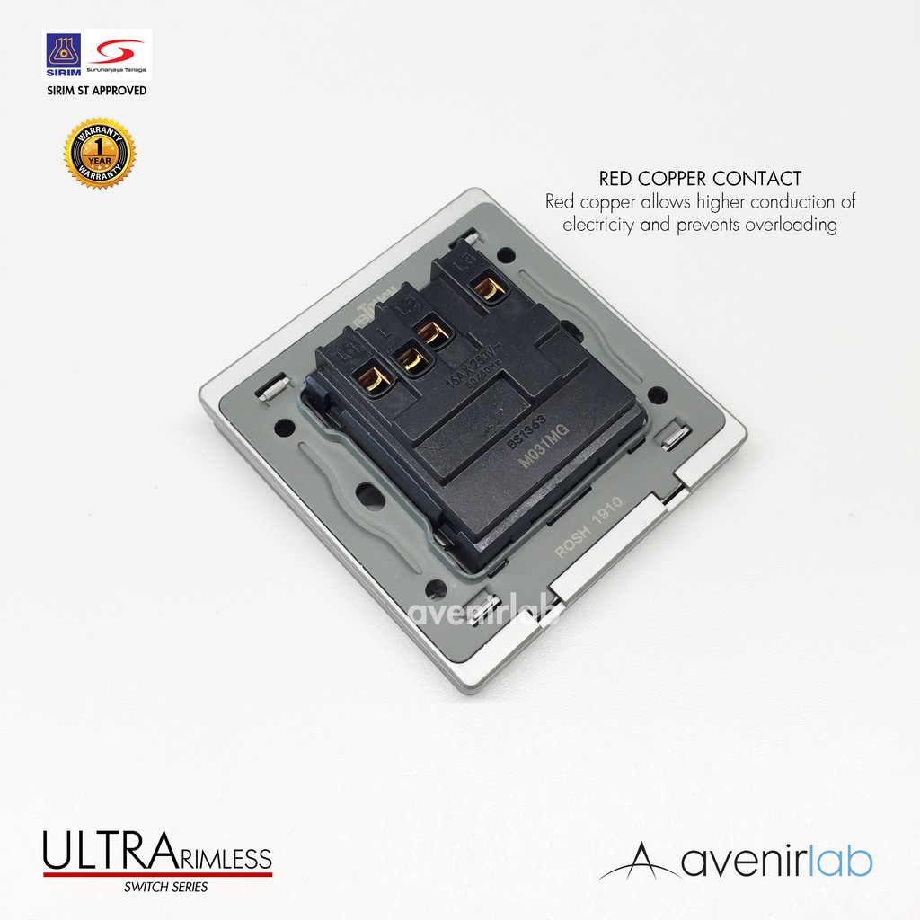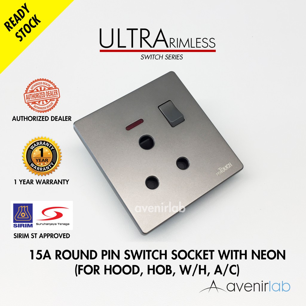 [GRAY] reTouch Ultra Rimless Switch 1/2/3/4 Gang 1/2Way Wall Switch 13A/15A Socket Waterproof Cover Frameless SIRIM
