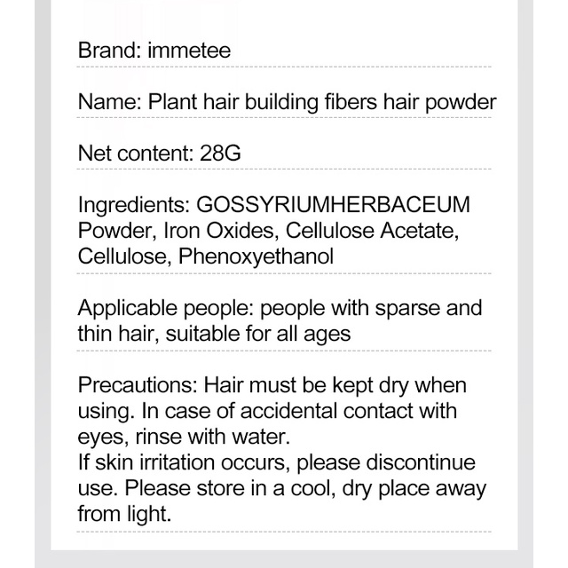 [Geegofirst] Natural dense hair fiber powder Plant Hair Building Fibers Thick Hair Powder