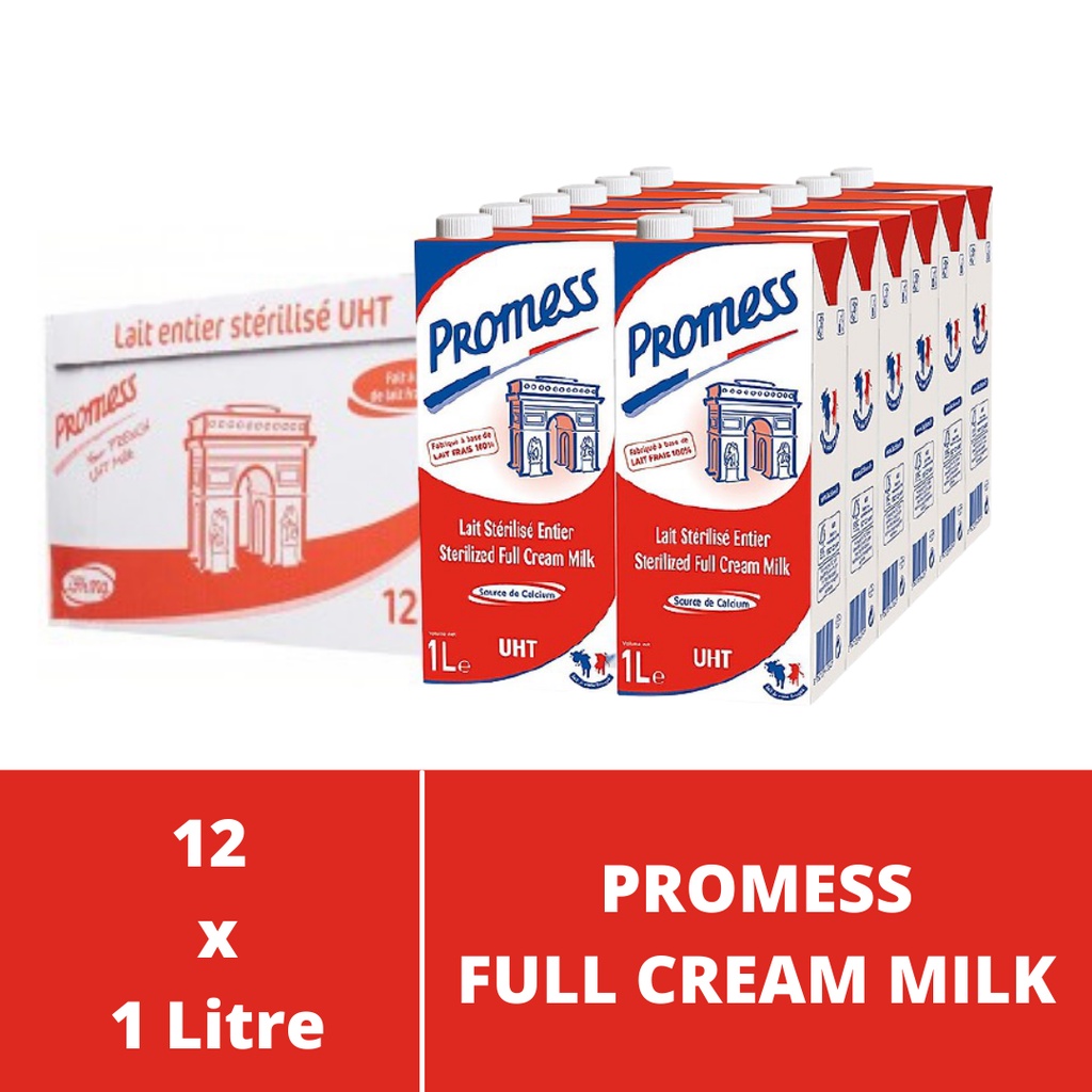 [HALAL + Ready Stock] PROMESS UHT Fresh Milk Full Cream MADE IN FRANCE 1 LITER - 1CTN (12 PACKS)