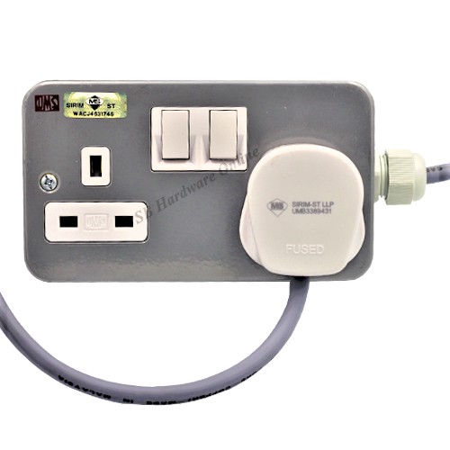 [HEAVY DUTY, 100% PURE COPPER 1.5MM CABLE] UMS 2-GANG 13AMP METAL CLAD TRAILING SOCKET (2 / 5 / 10 / 20 / 30METER)