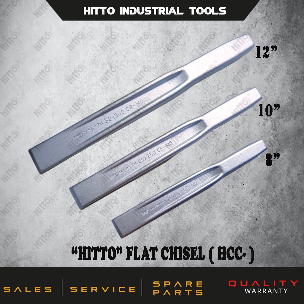 [ HITTO ] CR-MO Steel Ribbed Flat Chisel / Cold Chisel / Screw Chisel / Pahat Besi / Pahat Skru 8" 10" 12" ( 10HCC00 )
