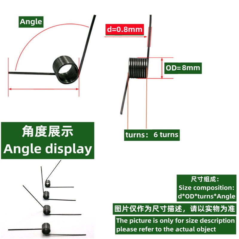 [HNK] Spring Steel Wire Diameter 0.8mm V-Shaped Spiral Torque Spring Hair Clip Spring Steel Torque Torque Torque Spring OD4-10mm Angle 60 90 120 180 Degrees