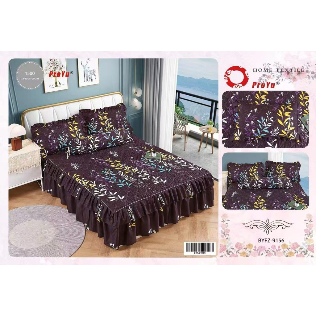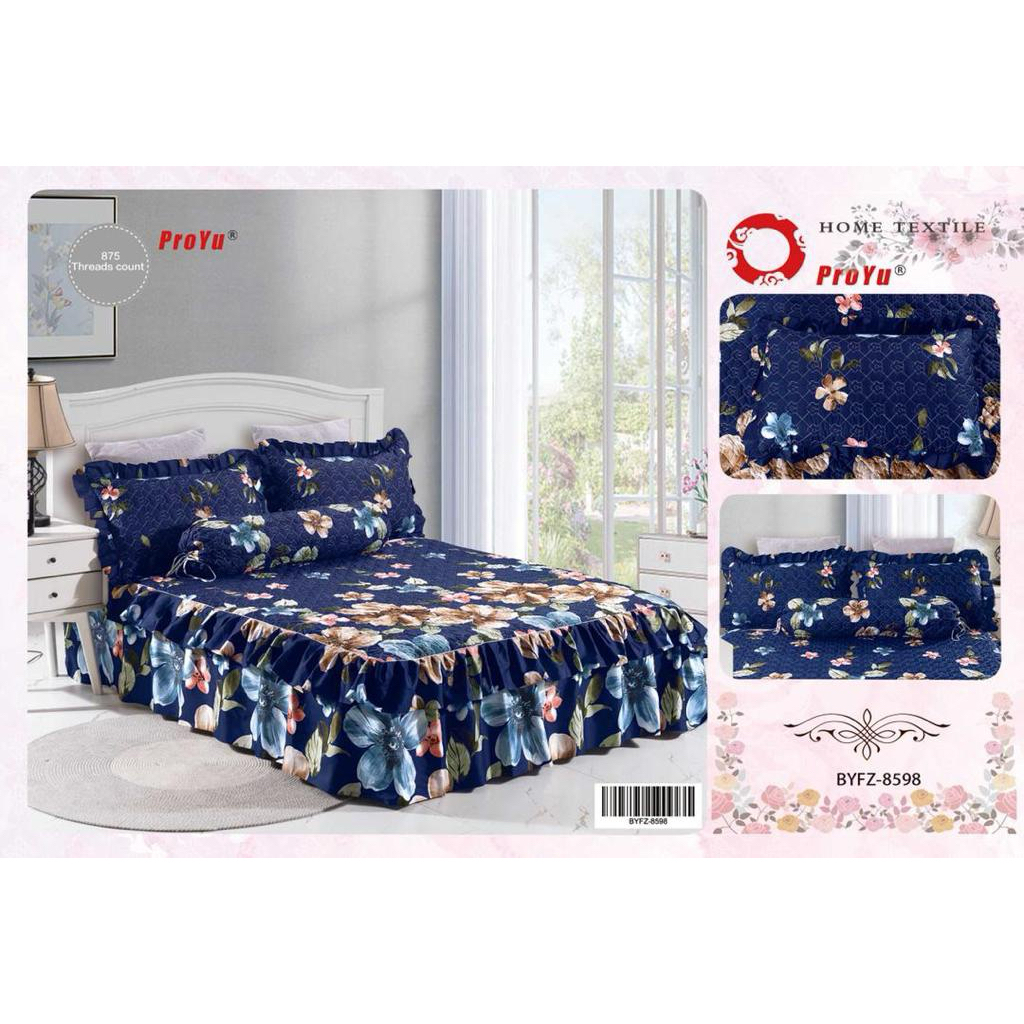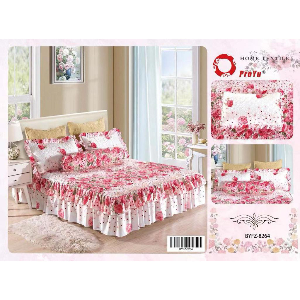 [HOT SELLING]CADAR ROPOL 100% COTTON READY STOCK 4 IN 1 Ropol Fitted Bedsheet Floral Design (Queen / King )