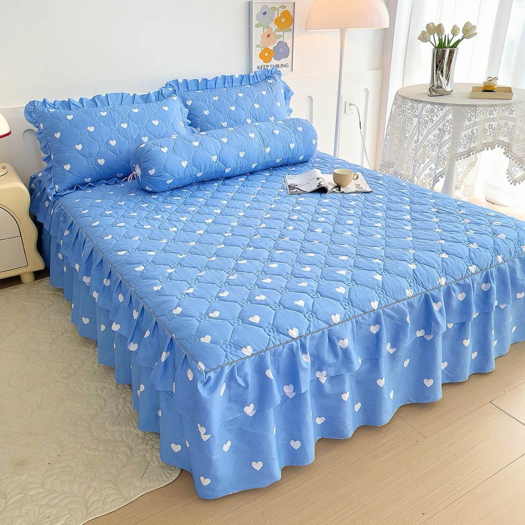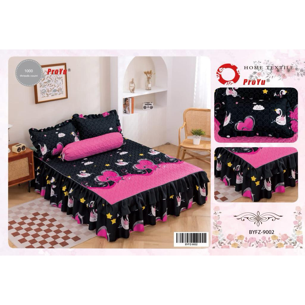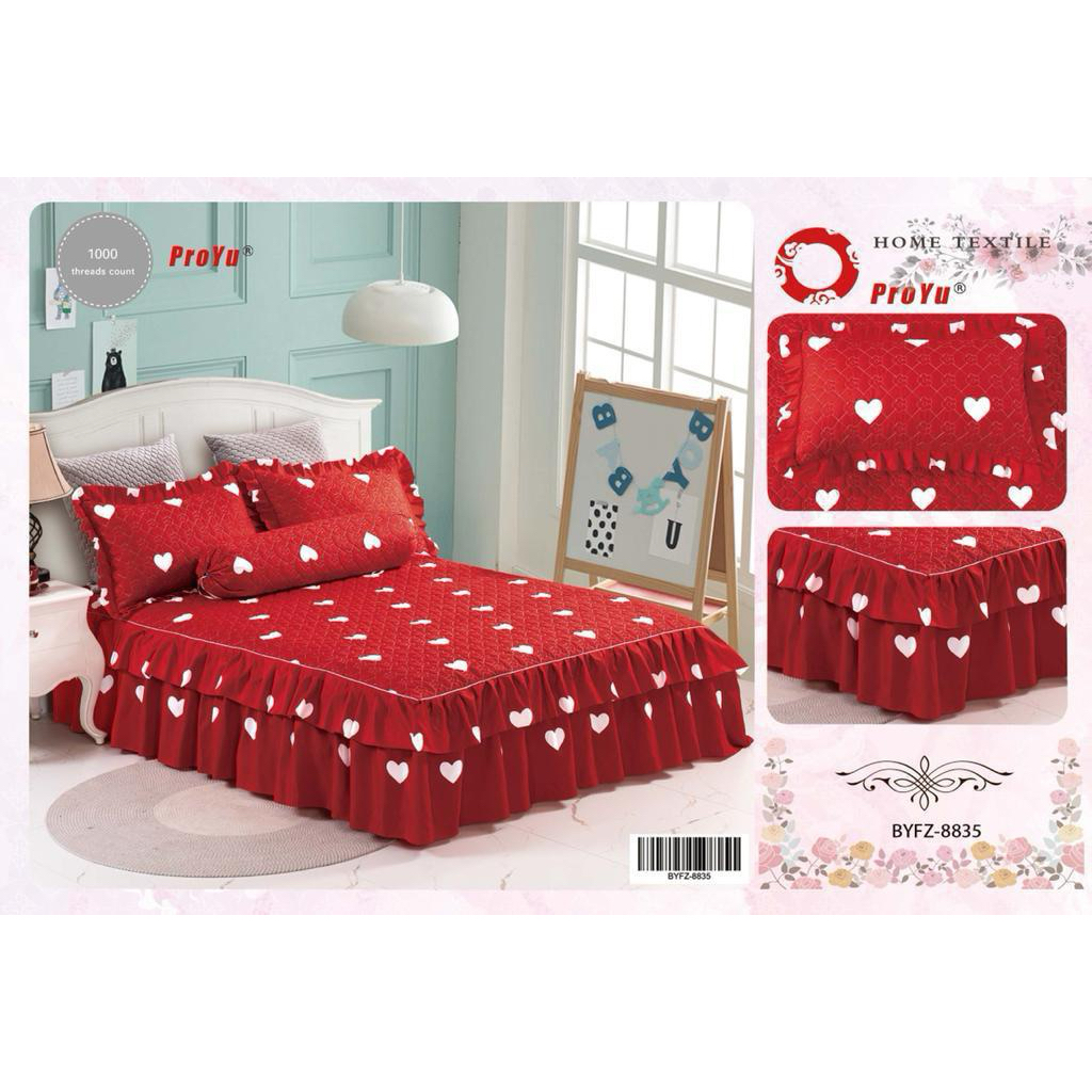 [HOT SELLING]CADAR ROPOL 100% COTTON READY STOCK 4 IN 1 Ropol Fitted Bedsheet Floral Design (Queen / King )