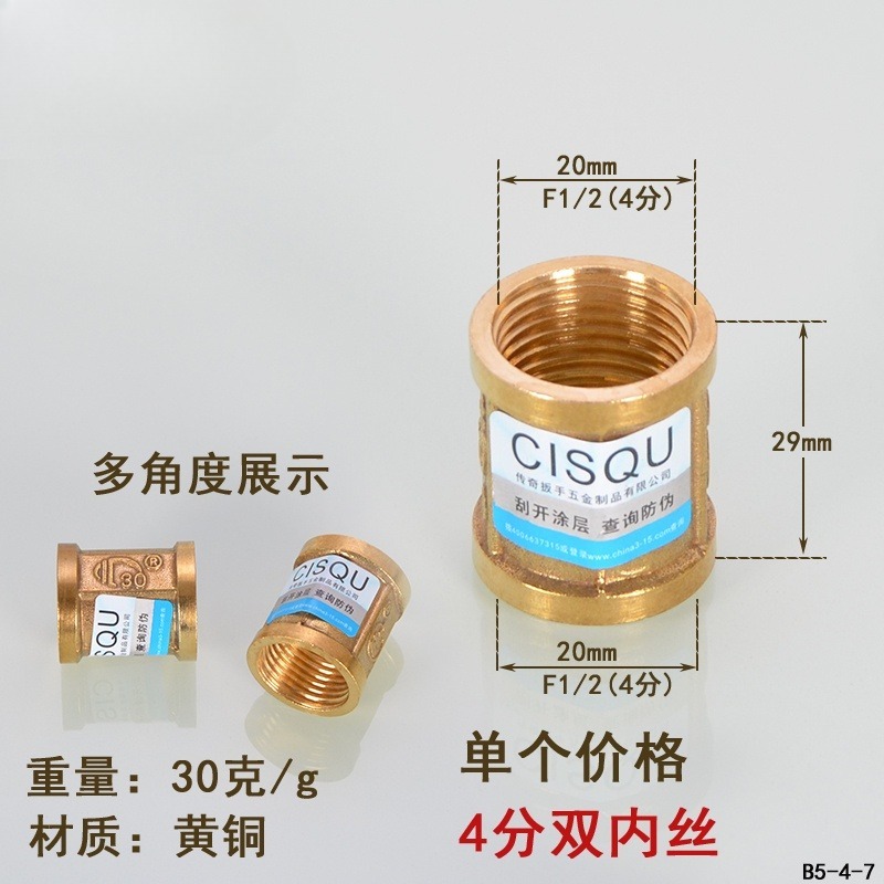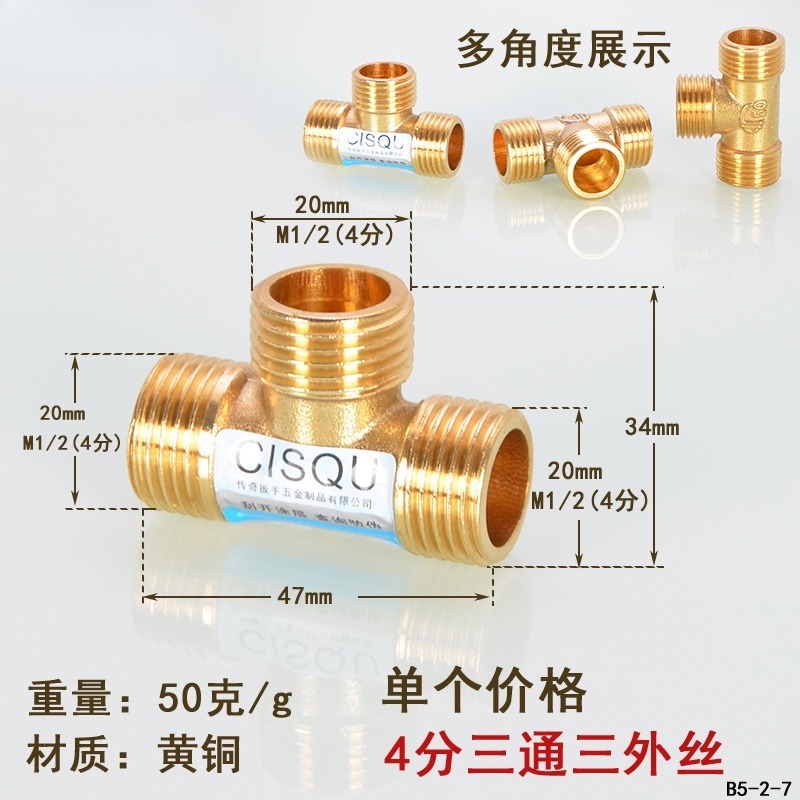 [HYH] 20mm Copper Tee Elbow Inner Outer Thread Joint Double Inner Thread Direct Outer Thread Four-way Gas Solar Water Pipe Fittings