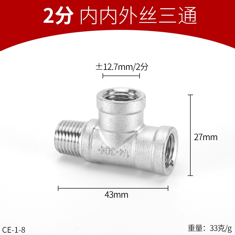 [HYH] 304 Stainless Steel Tee Joint DN6/8/10/15/20/25 Tee Outer Thread Inner Outer Threaded Tee Water Pipe Fittings Thick