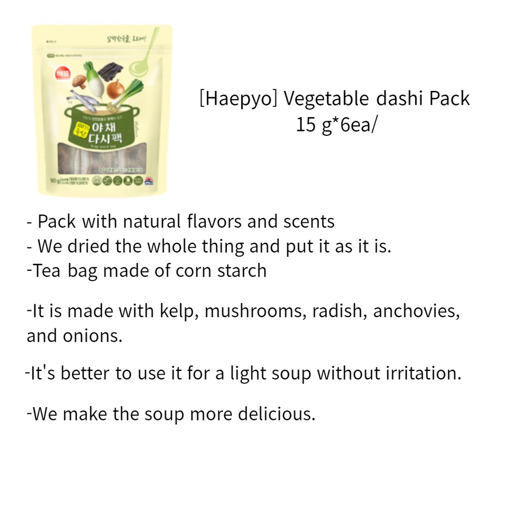 [Haepyo] Vegetable dashi Pack 15 g*6ea/anchovy dashi pack/for Korean Food Stew, Soup Stock Base