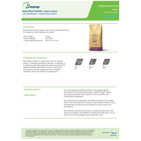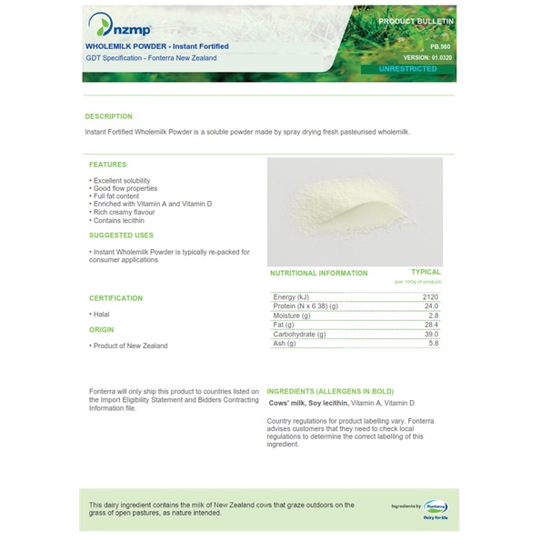 [Halal]New Zealand instant whole milk powder 1 kg repacked Halal tepung susu full cream instant