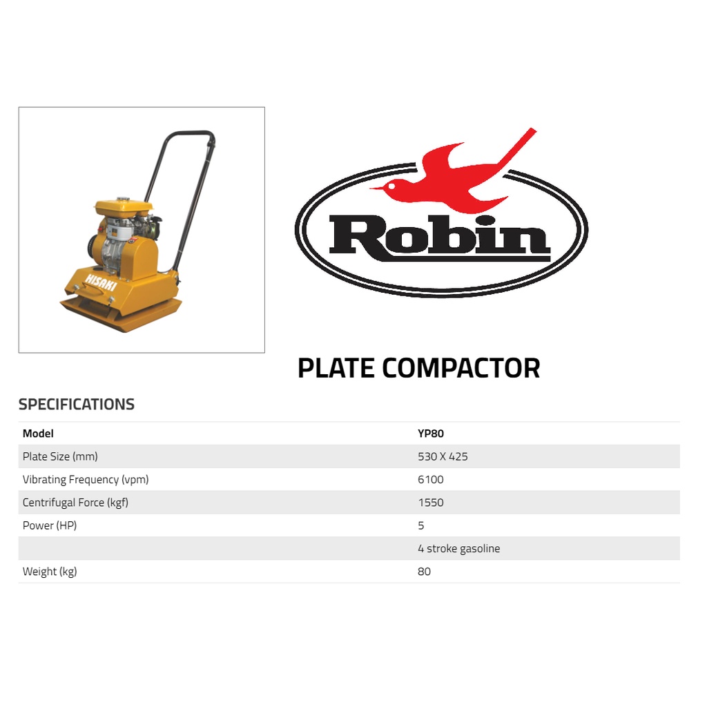 [Heavy Duty] Robin Ey20 Gasoline Plate Compactor (5Hp)
