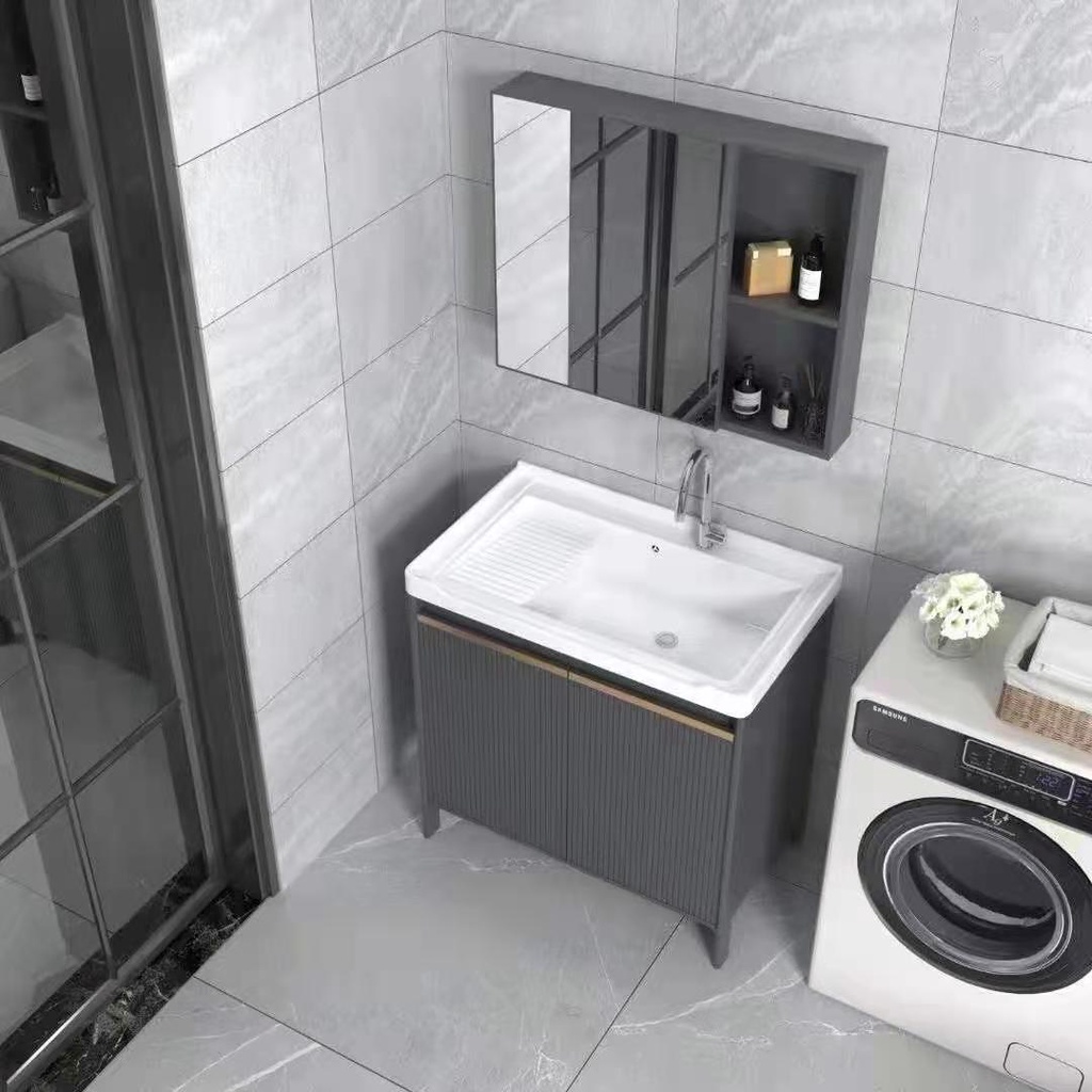[Hot] 600mm Ceramic Laundry Basin c/w Aluminium Basin Cabinet-Free Basin Tap & Pop up Waste-VBC20260