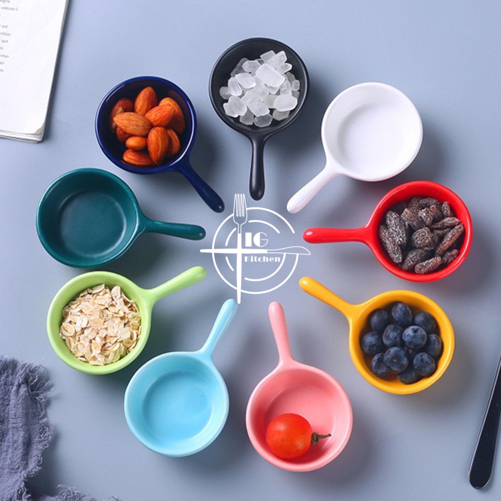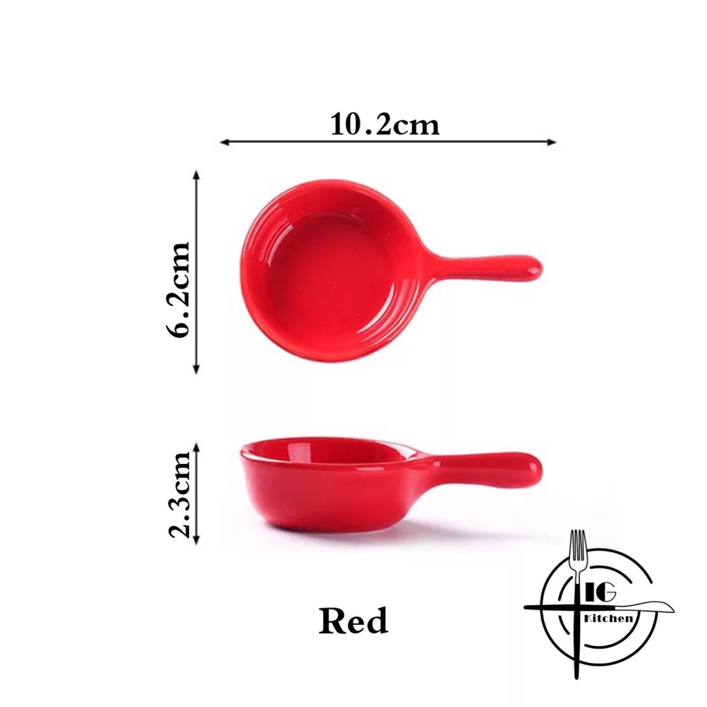 =IG= Ceramic Sauce Plate Mini Dipping Pan Design With Handle Bowl Sauce Seasoning Kitchen Plate Porcelain