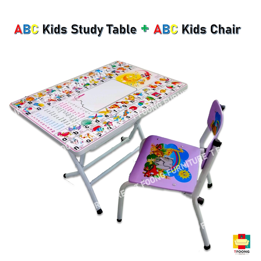 [IN STOCK] ABC Children Study Foldable Home Table and ABC Chair Set or with 3V Jolly Kids Plastic Chair Set ABC/Set KL