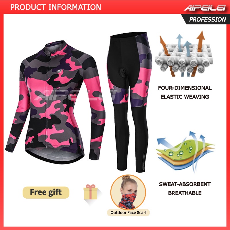 [IN STOCK]AIPEILEI Women Cycling Jersey Long Sleeve Kit Ladies Biking Jersey Outfits Quick-Dry Cycling Sportswear Riding Apparel