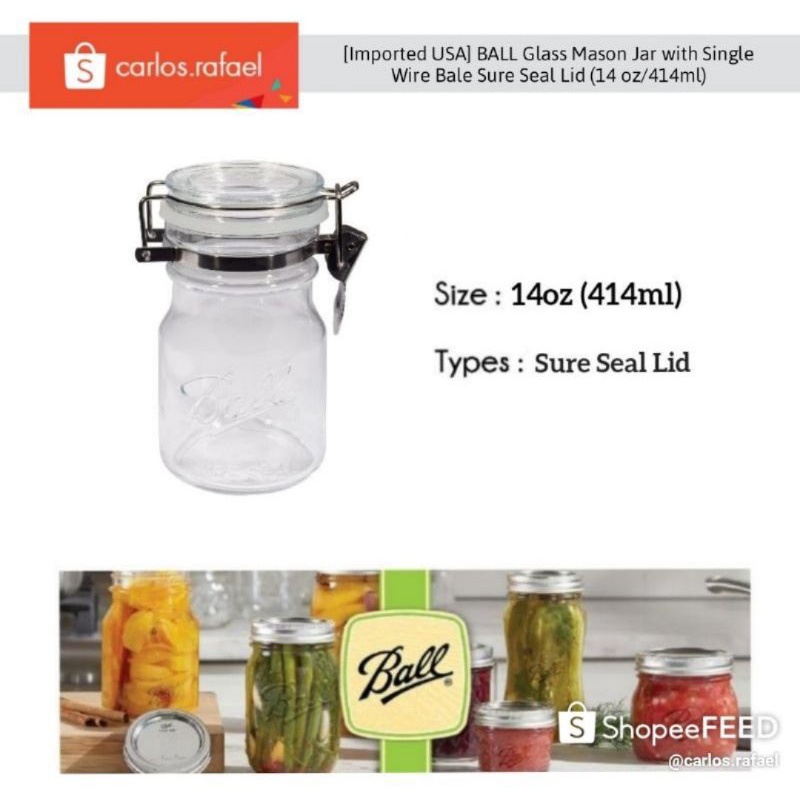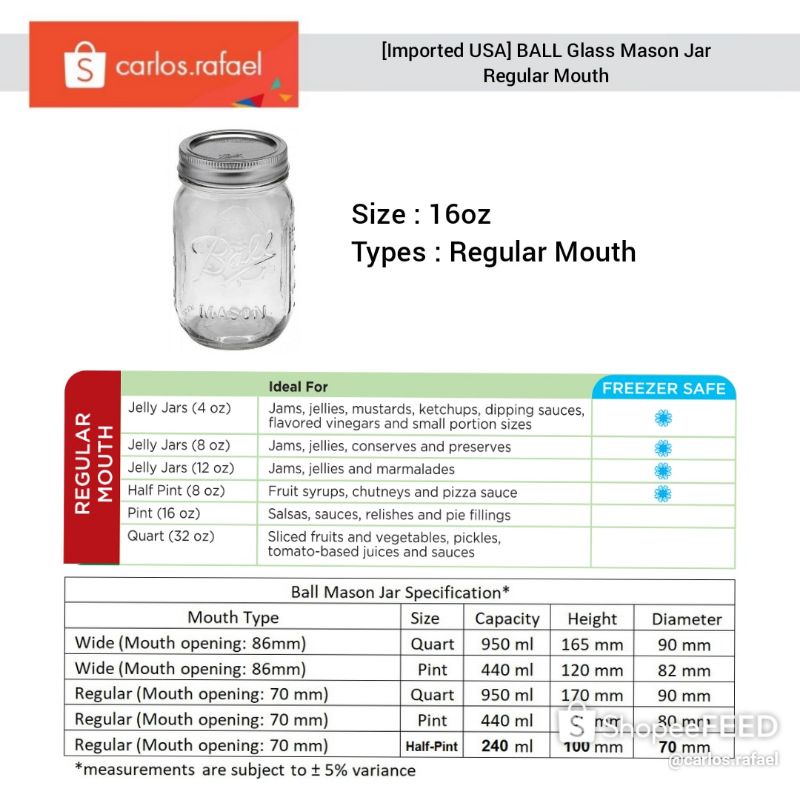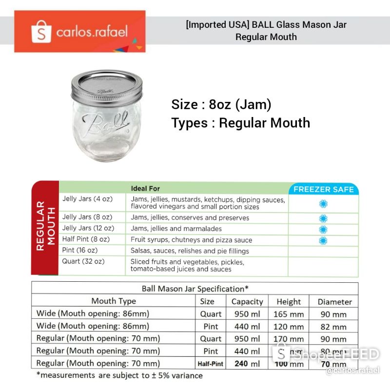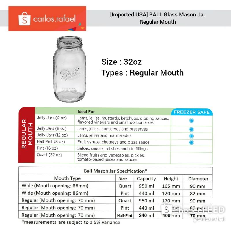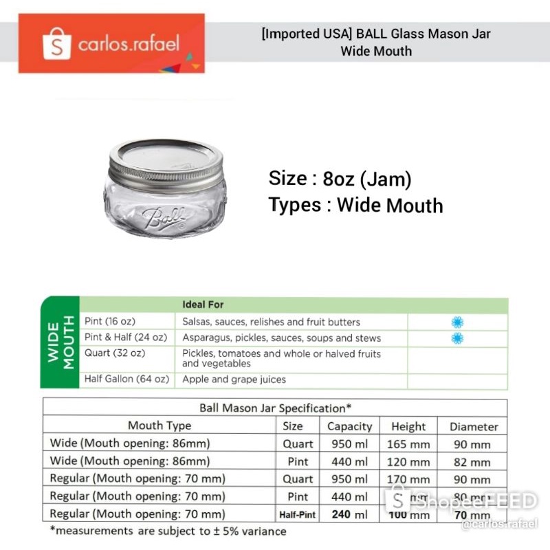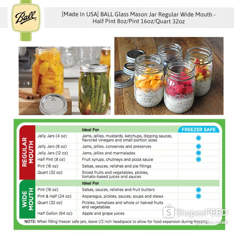 [Imported USA] BALL Glass Mason Jar Regular Wide Mouth with Handle - Half Pint 8oz/Pint 16oz/Quart 32oz/Half Gallon 64oz