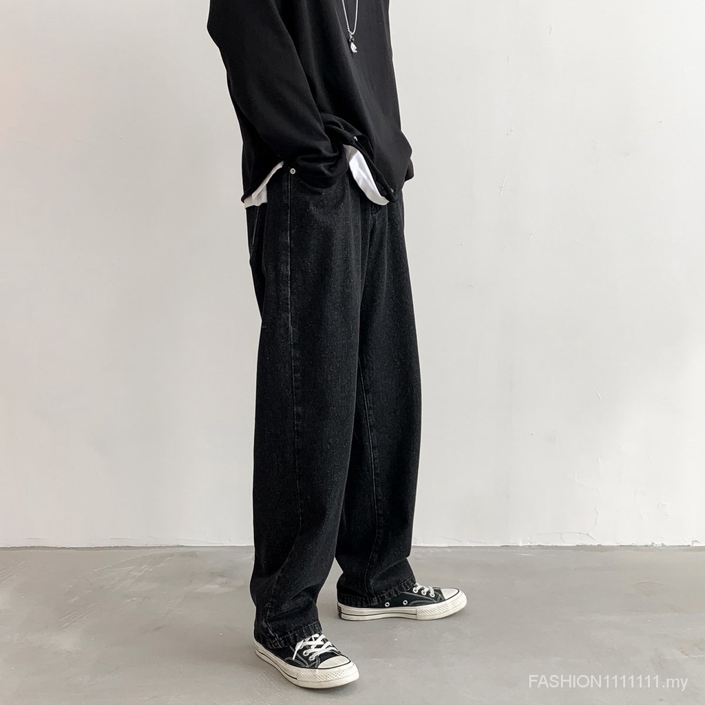 [In stock] jeans men’s fashion brand loose straight spring and summer thin section Korean fashion nine-point wide-leg casual trousers men’s