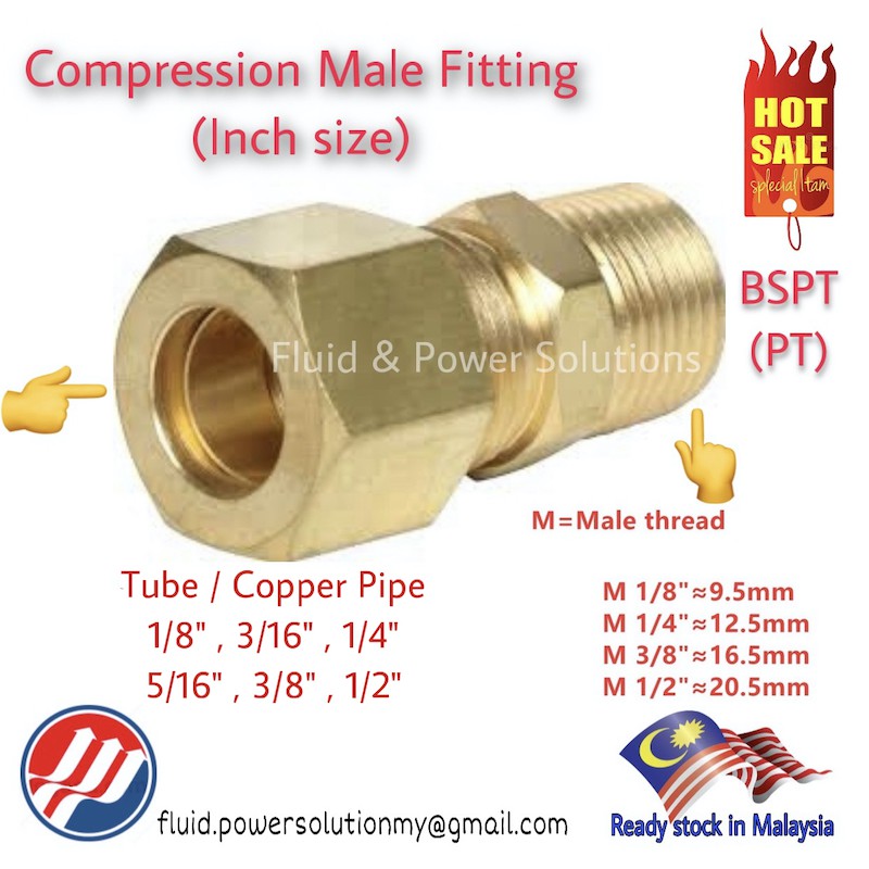 [ Inch ] Compression Male Fitting BSPT(PT) Male 1/8",1/4",3/8" and 1/2",Tube/Pipe inch size1/8",3/16",1/4",5/16,3/8,1/2.