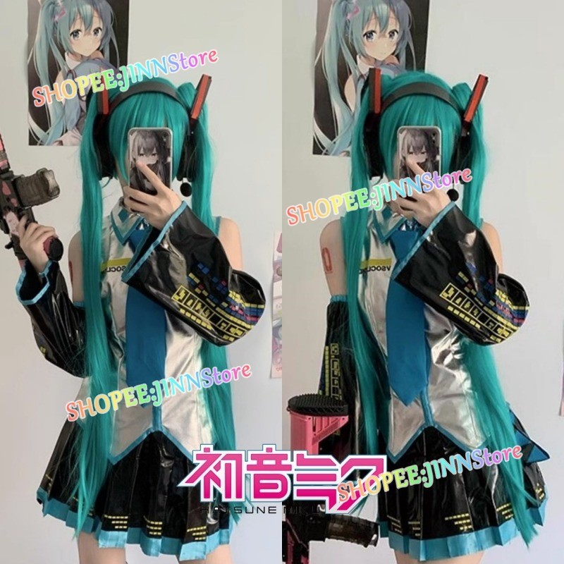 - JINN - VOCALOID MIKU Cosplay HATSUNE MIKU Cosplay Costume Patent Leather Cosplay Dress+Wig+Accessories Full Set