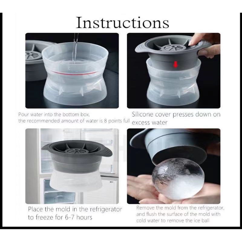 [Johor Stock] Silicone Ice Ball Mold Whiskey Ice Ball Maker Round Ice Box Silicone Spherical Ice Cube Mold