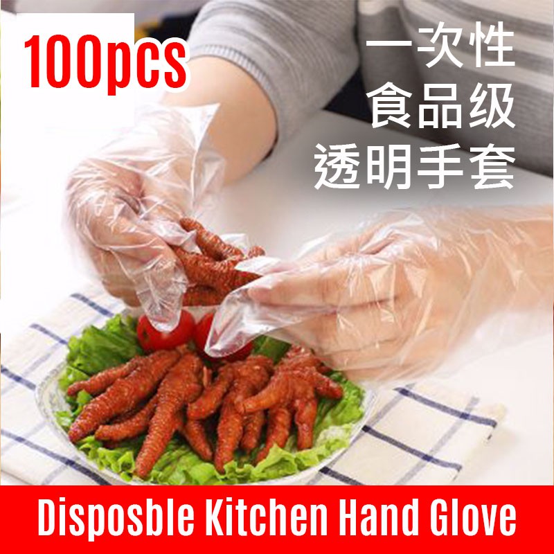 [K-100] Disposable Plastic Transaprent Cooking / Catering Food Safety Kitchen Hand Glove (100pcs)