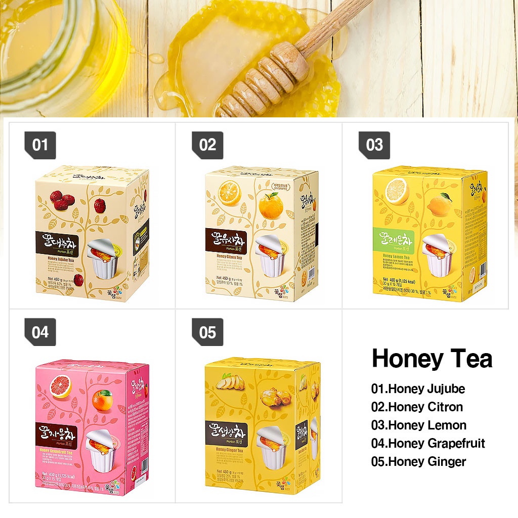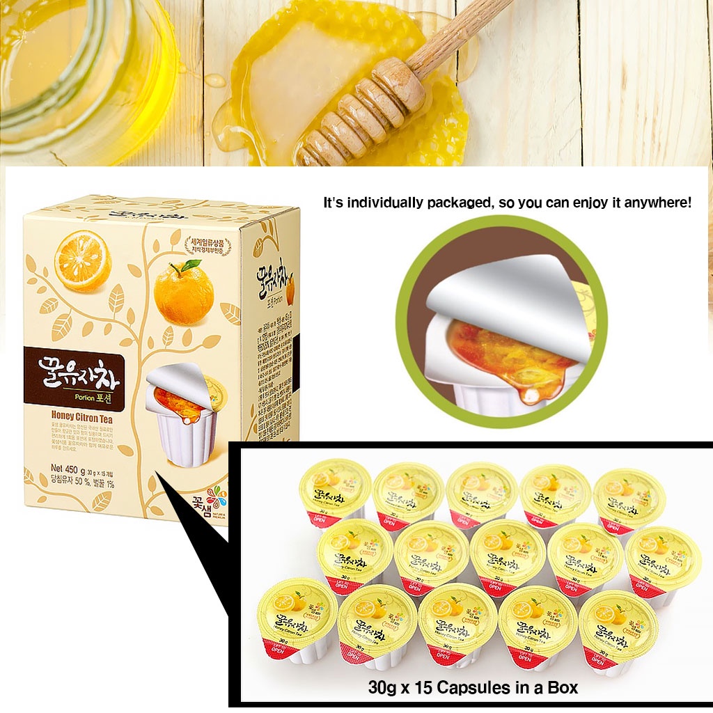 [Kkohshaem] Korean Sweet Honey Tea 5 Flavors - Honey Citron, Honey Lemon, Honey Grapefruit, Honey Jujube, Honey Ginger 30g x 15 Capsules