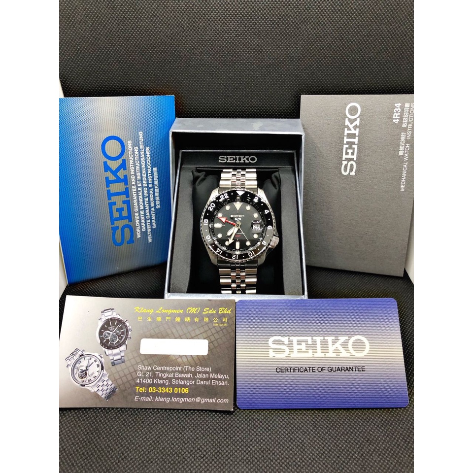 [Klang Longmen] SEIKO 5 Sports SSK001K1 / SSK001 GMT Series Date Magnifier See-Thru Back Automatic Men's Watch