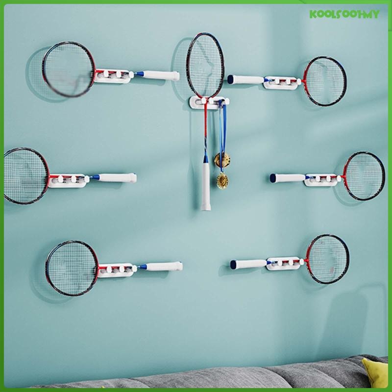 [KoolsoobdMY] Wall Mounted Racket Rack Universal Multipurpose with Small Hooks Tennis Racket