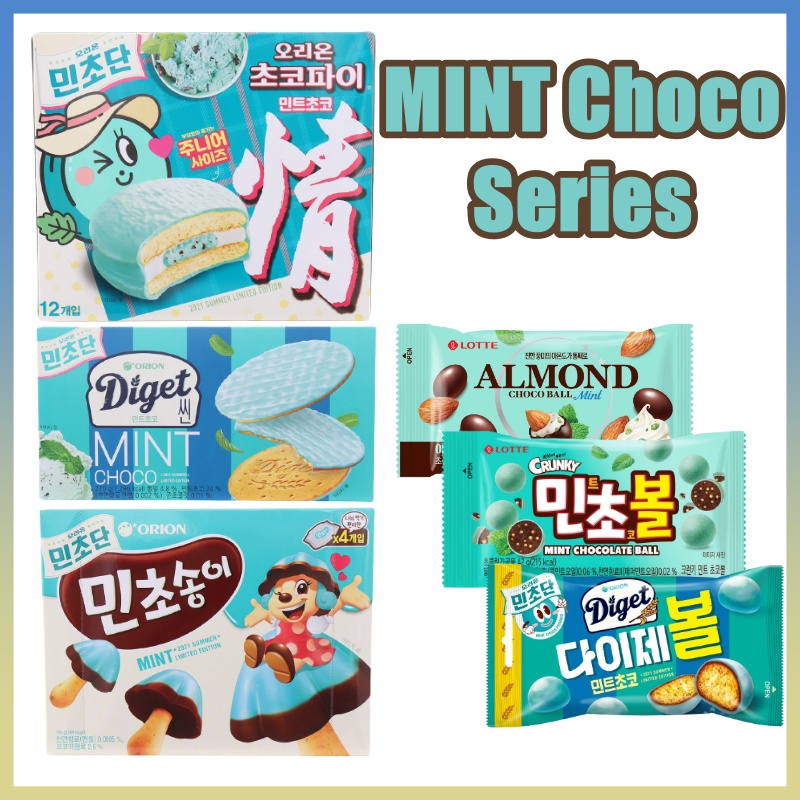 [Korean Snacks] MINT Chocolate Series / [ORION] Mint Chocopie, Mint Choco Boy, Mint Choco Diget, Mint Choco Diget Ball/ [Lotte] Mint Choco Sand, Armond Choco Ball, Mint Choco Ball