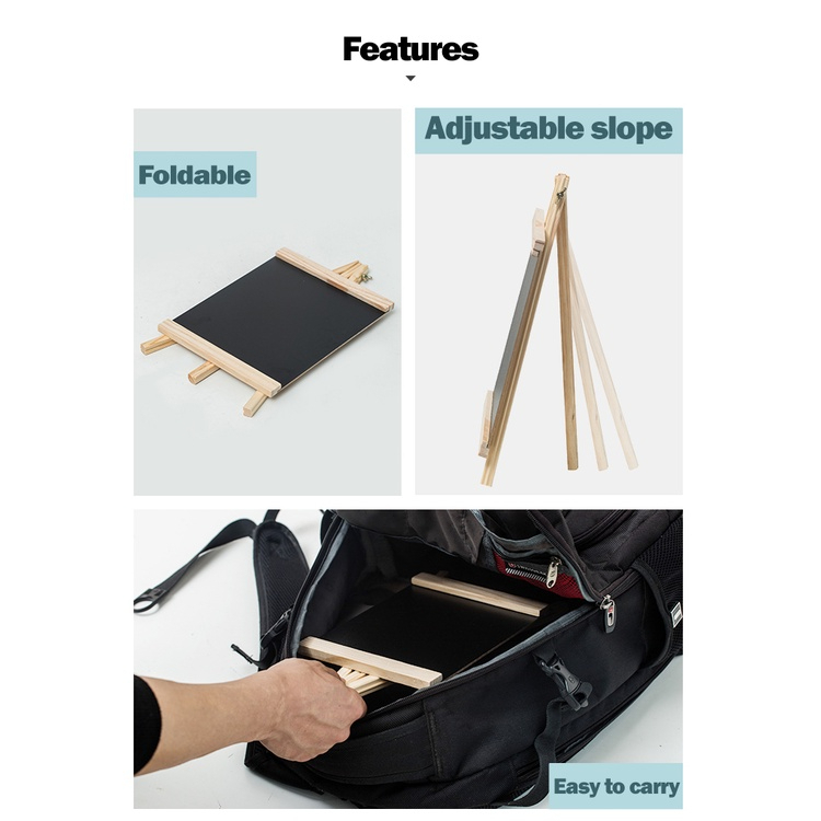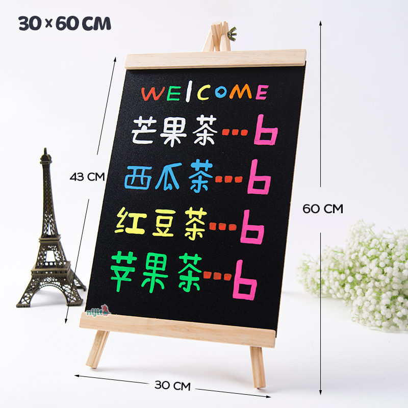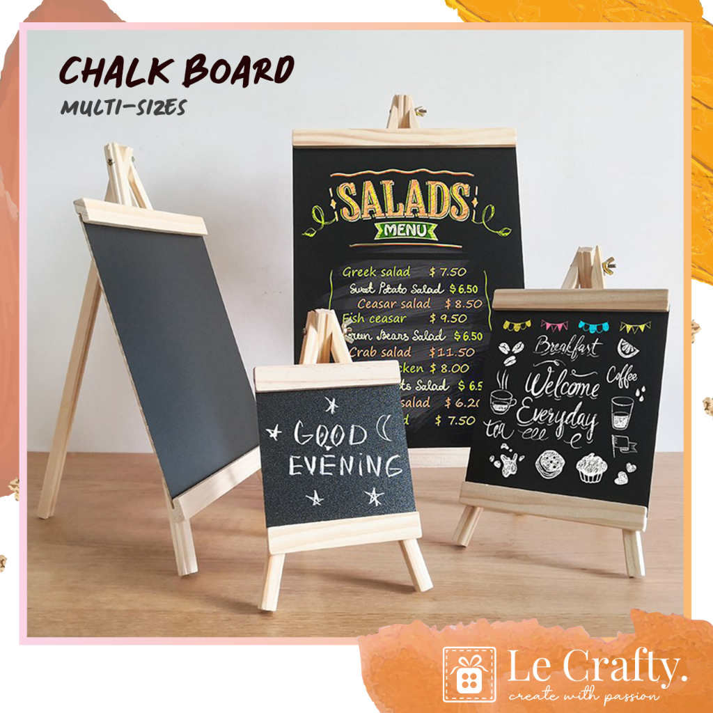 [LECRAFTY] Black Board With Wooden Stand Papan Hitam Menu Message Chalkboard Mini Blackboard Drawing Desktop Artboard