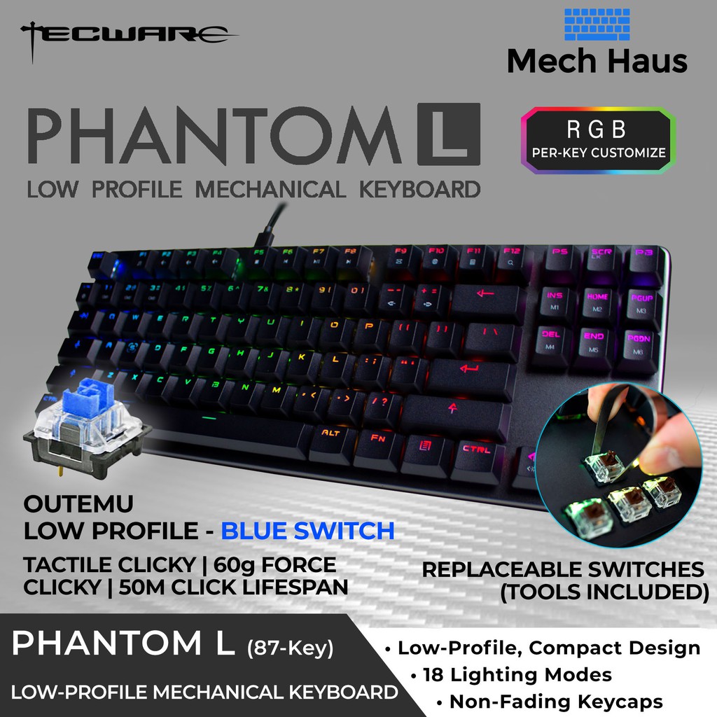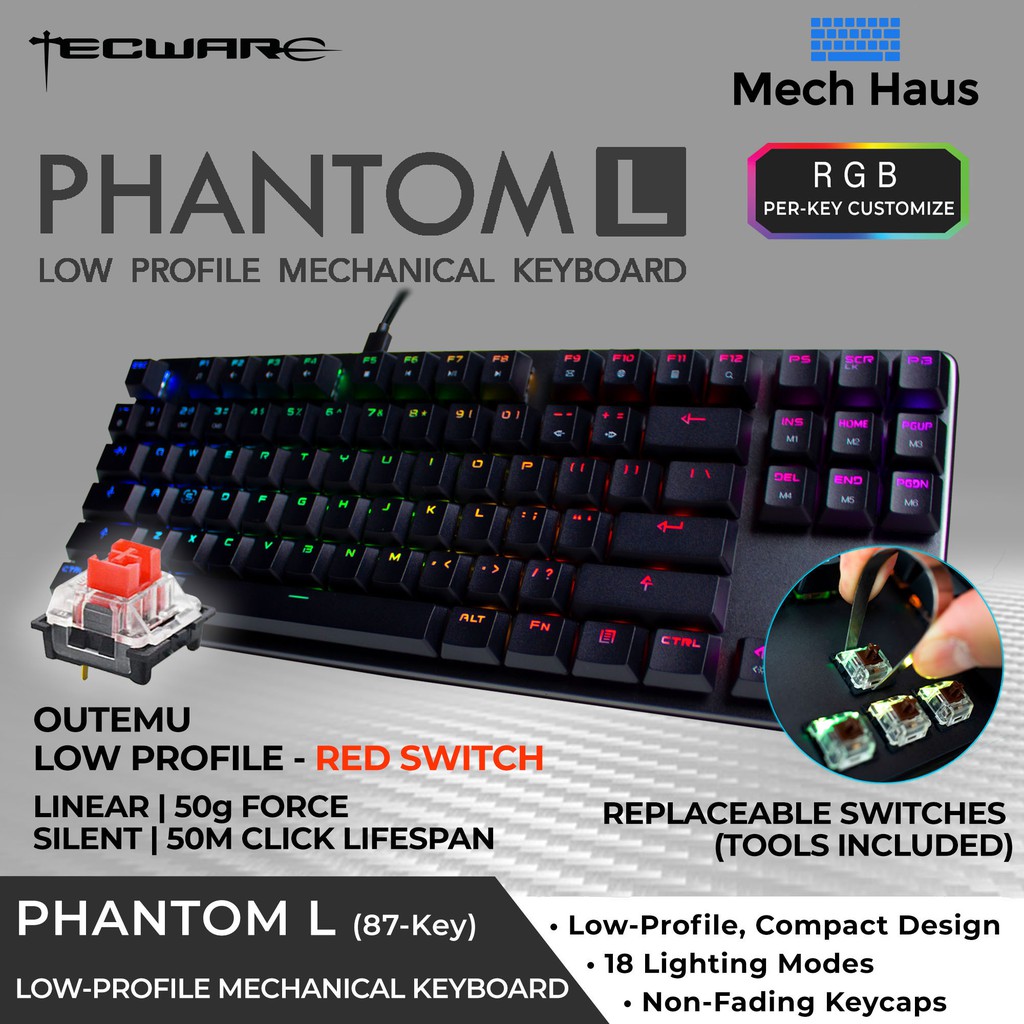 [LIFETIME SWITCH WARRANTY] TECWARE PHANTOM L LOW PROFILE RGB TKL 87 KEY MECHANICAL KEYBOARD W/ DETACHABLE USB C