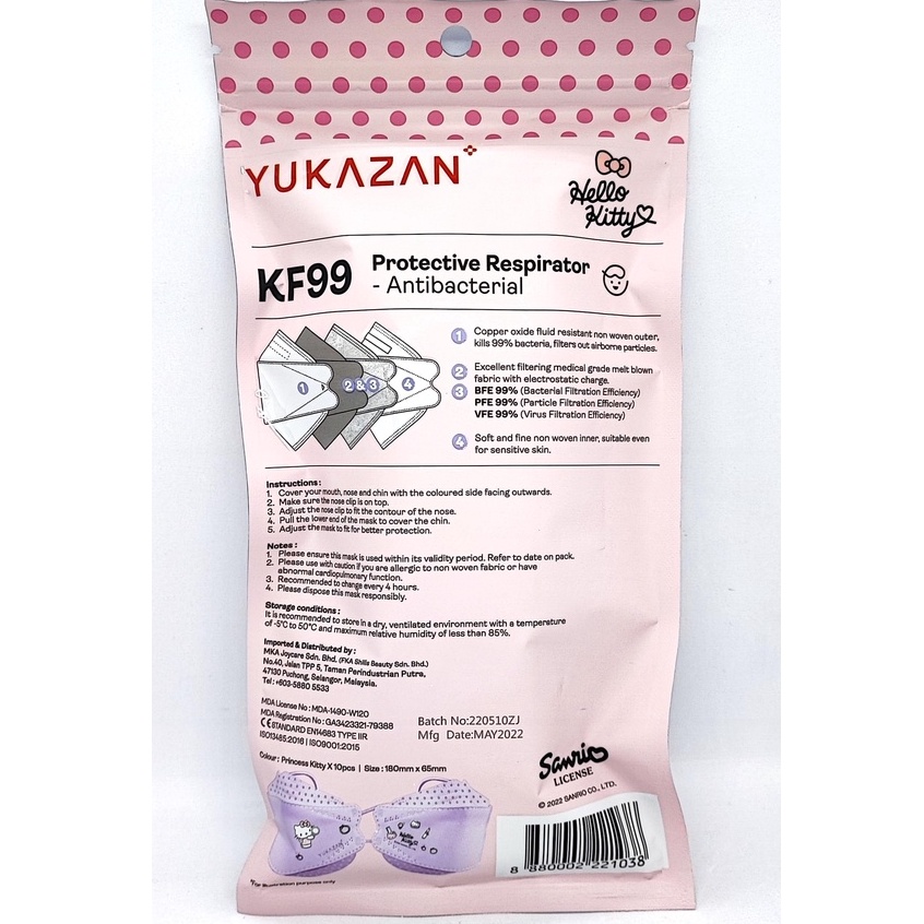 [LIMITED EDITION - HELLO KITTY FOR KIDS] Yukazan KF99 Protective Respirator 10s (Princess Kitty)