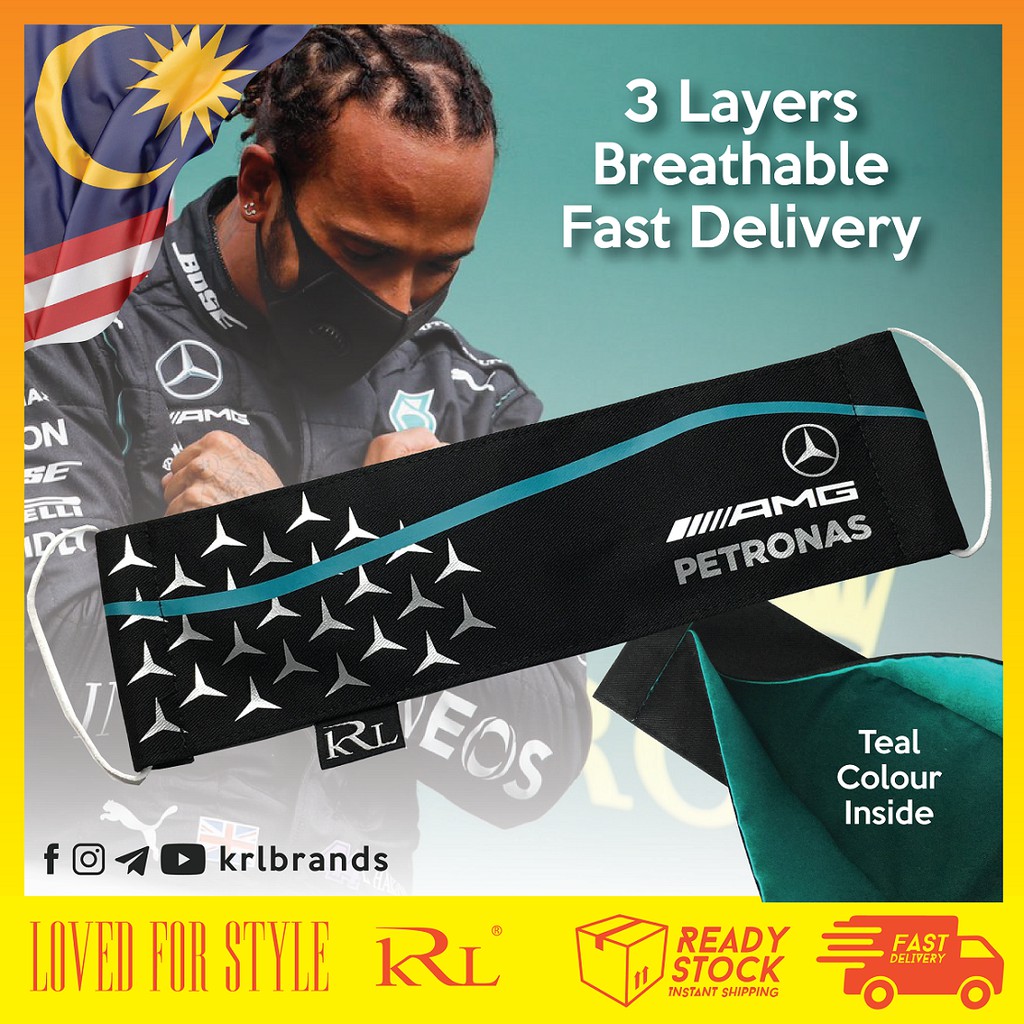[LIMITED EDITION] MERCEDES AMG PETRONAS Face Mask 3 Layers of Fabric Cotton Face Mask Breathable
