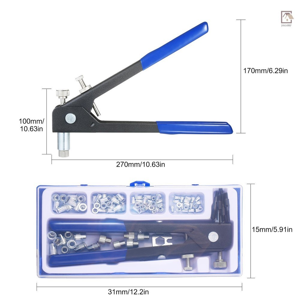 [LOCAL]Fast Shipping 86PCS Rivet Nut Tool Kit Set Blind Rivet Nut Hand Riveter Wrench Threaded Insert Tool Rivet Nut Gun with Metric Rivet Nuts Assortment M3 M4 M5 M6 M8