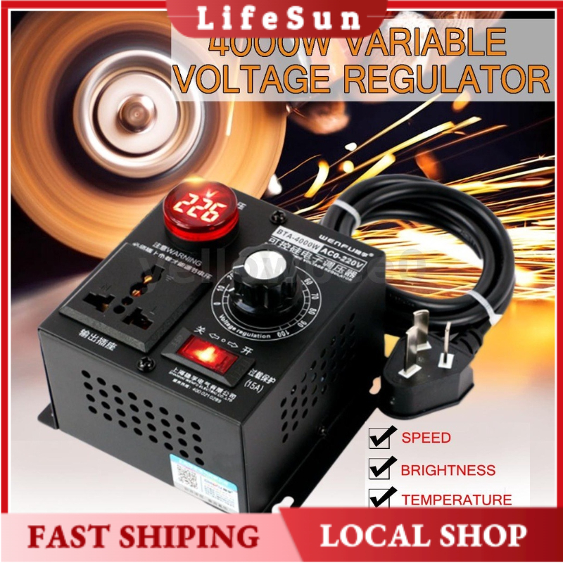 [LOCAL LIFE] AC 220V 4000W SCR Voltage Regulator Dimmers Motor Speed Controller Thermostat Electronic Voltage Regulator Module Variable Voltage Controller Portable Speed Temperature Light Voltage Adjuatable Dimmer