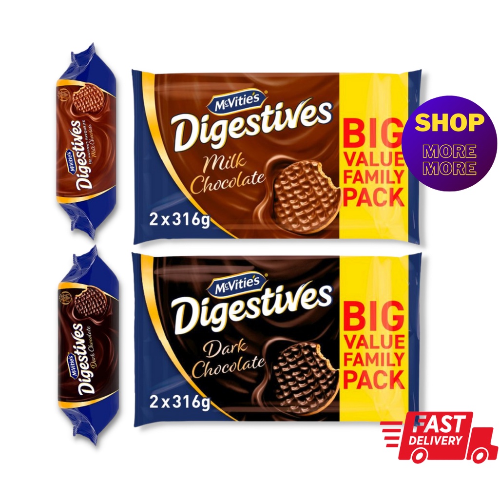[Christmas Gifts🔥] 🇬🇧 McVities Milk Dark Chocolate Digestives Biscuits Single/Twin Pack 2x 316G Tartles Choc - From UK