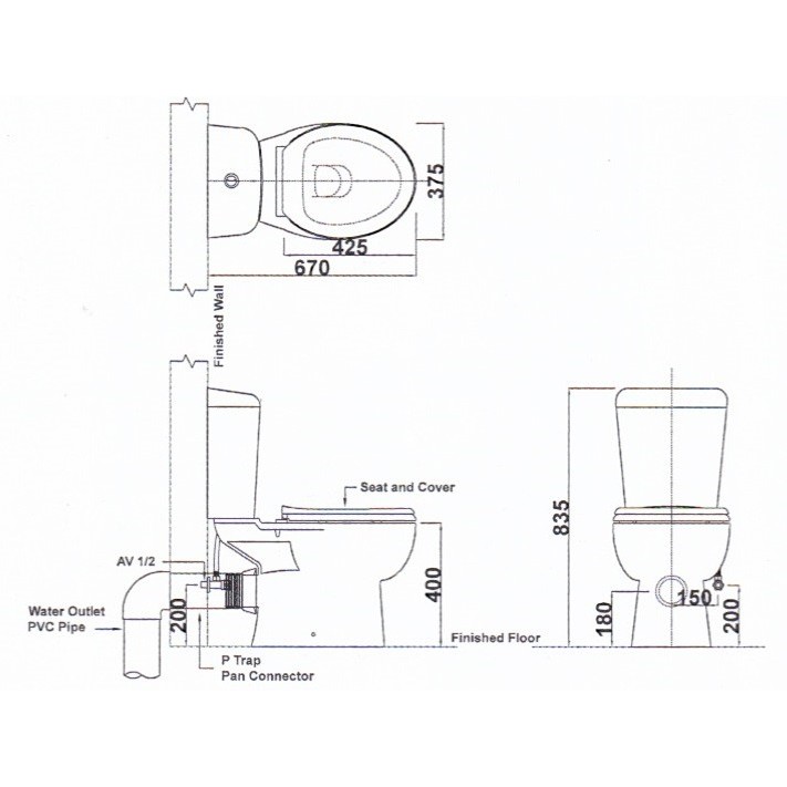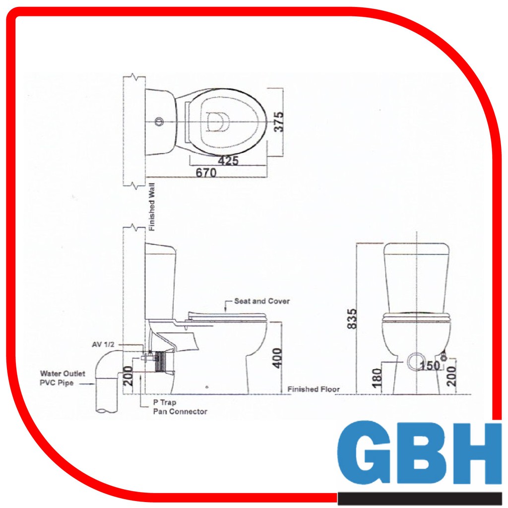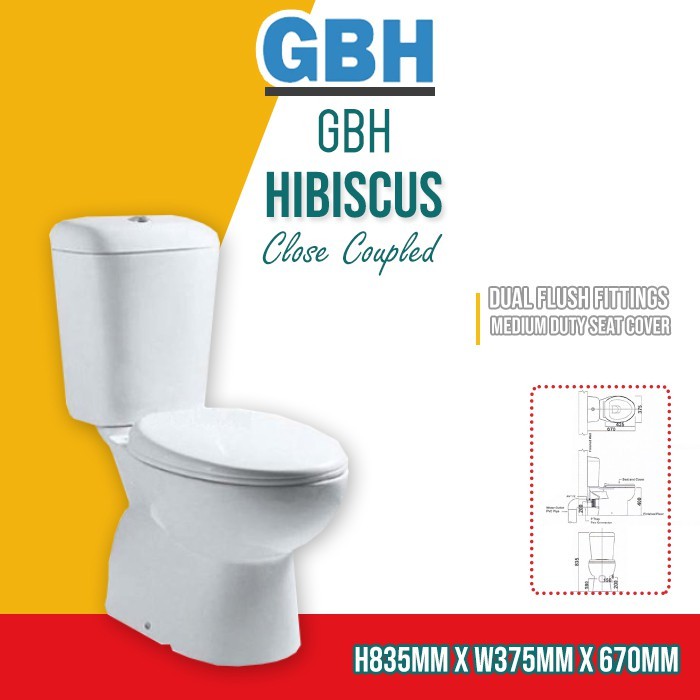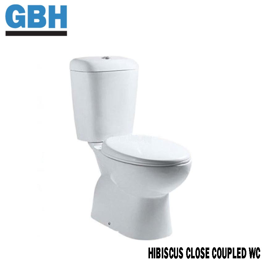 [Limit to 1 Unit Per Order] GBH HIBISCUS Close Couple WC Toilet Bowl S Trap Wash Down Water Closet 250mm-WHITE