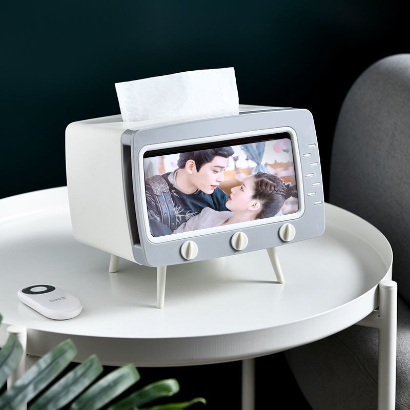 [Local Ready Stock] TV Table Multi-function Desktop Storage Box Creative Tissue Box Roll Plastic Tray Basic Kitchen Pumping Tray