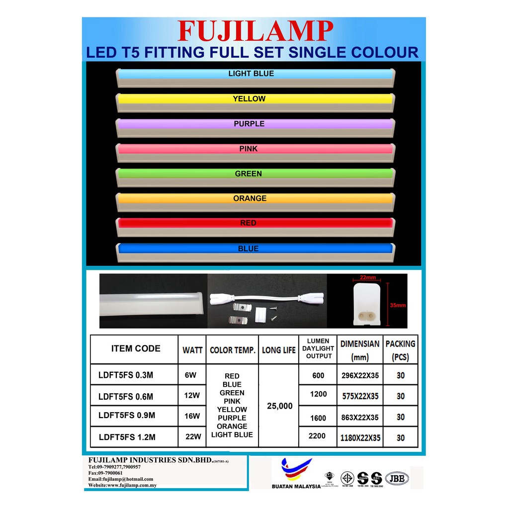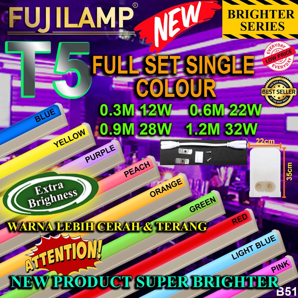 [Local Seller] LED T5 Fitting Fullset 1 Colour 6W/12W/16W/22W (Blue/Yellow/Pink/Orange/Green/Red/Light Blue)