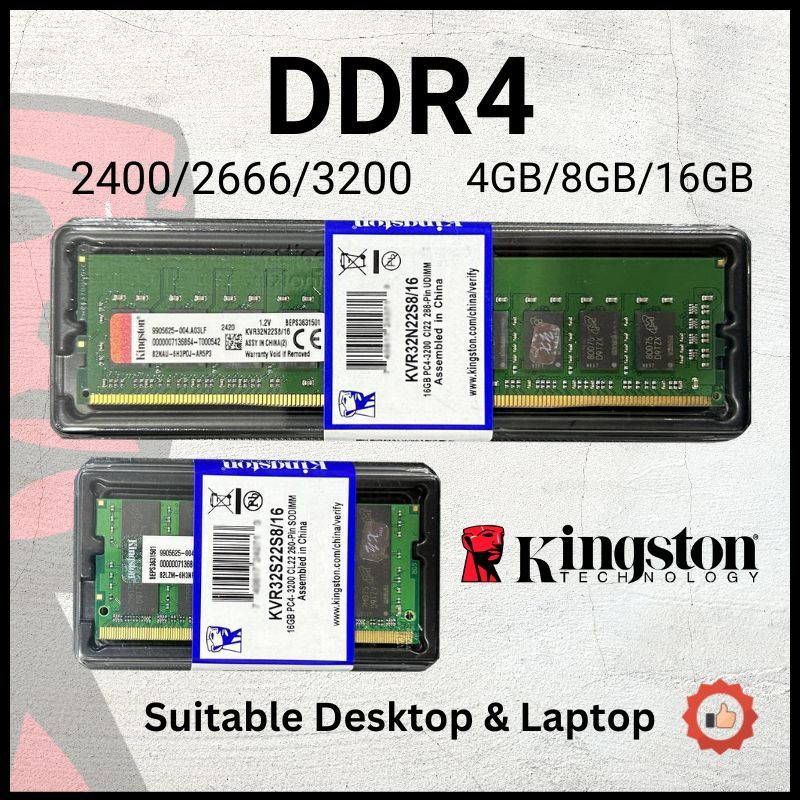 [Local Stock] Kingston DDR4 2400Mhz 2666Mhz 3200Mhz 4GB 8GB 16GB Desktop Laptop RAM