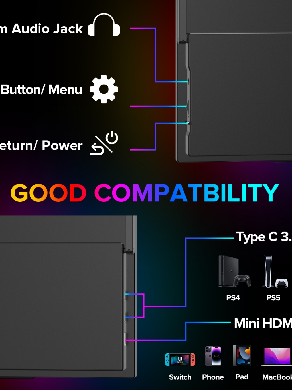 [Local delivery]UPERFECT Portable Monitor 18 Inch 2K 100%sRGB 144Hz Gaming Display IPS LCD Panel Matte Mobile Screen