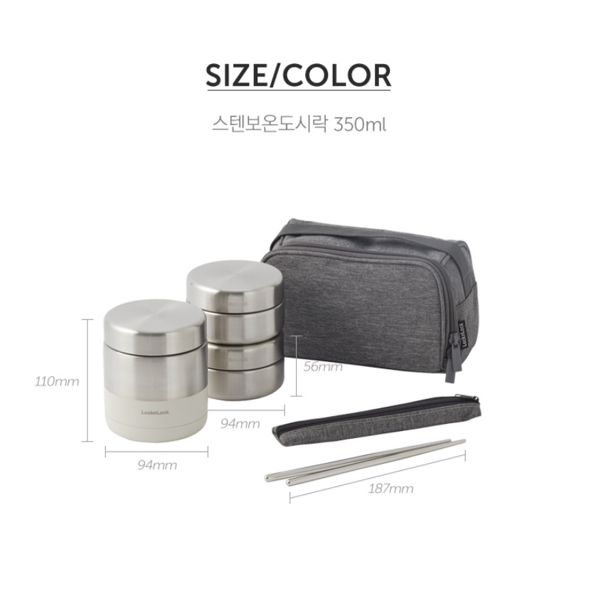 [LockNLock] Stainless Heat insulation Lunch Box Set (include chopsticks) 350ml (LHC8012IVY) / 450ml (LHC8013GRY)