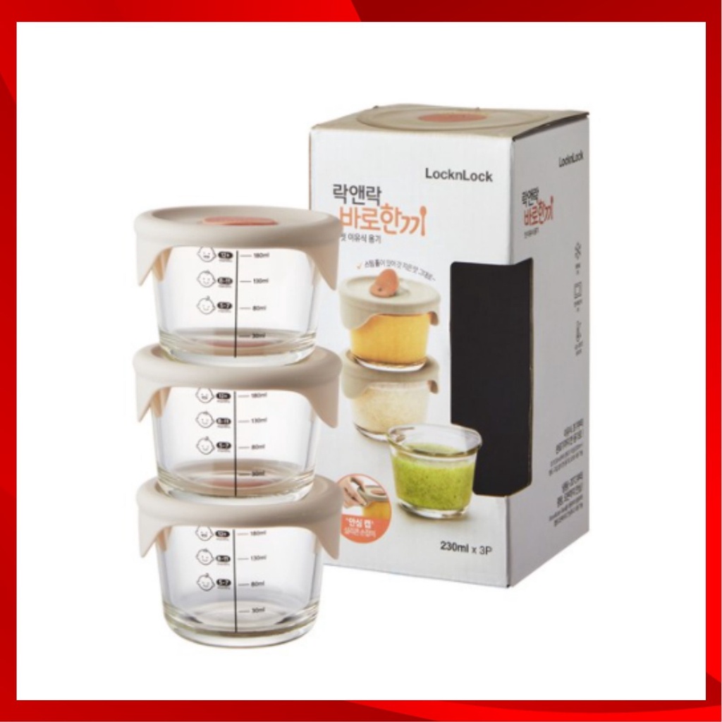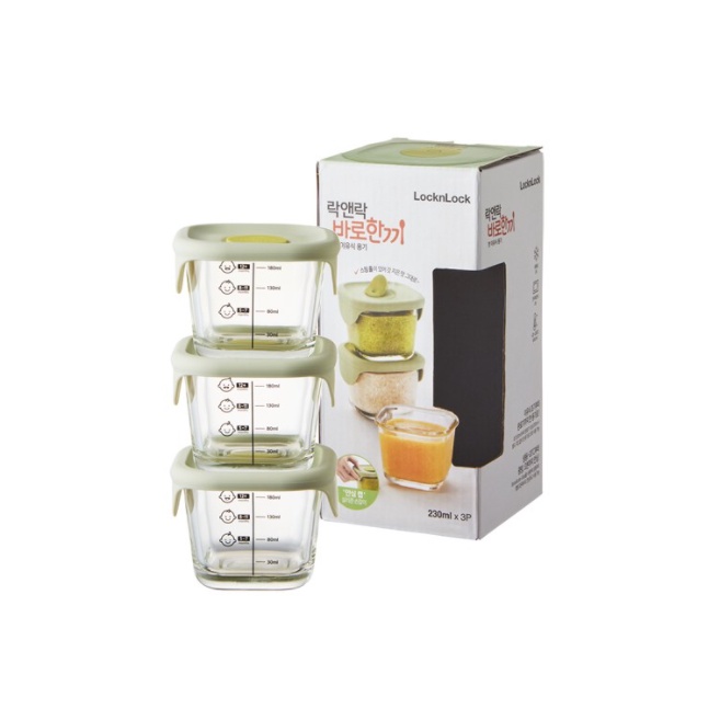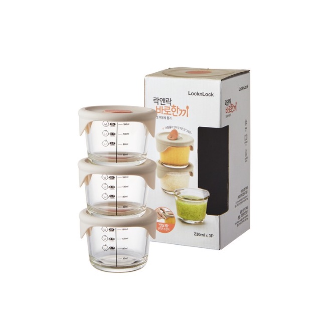 [LocknLock] Baby Food Container (3ea / 230ml / 260ml) one meal right away glass container steam hole scale container