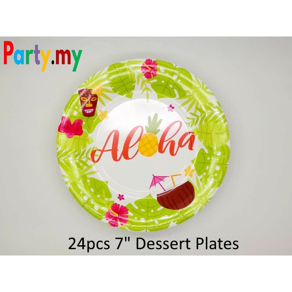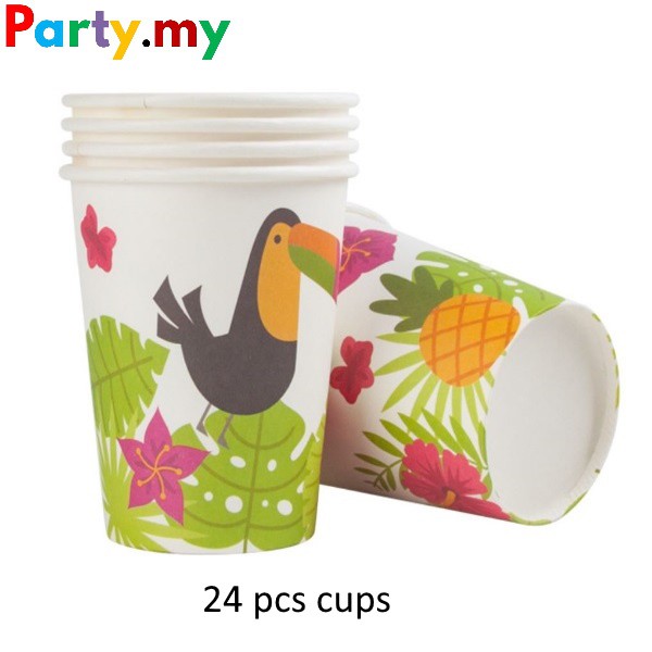 [M'SIA READY STOCK] Hawaiian Themed Tableware (7 inch dessert paper plate & paper cups)
