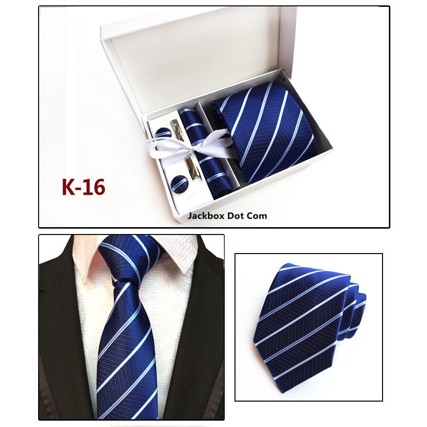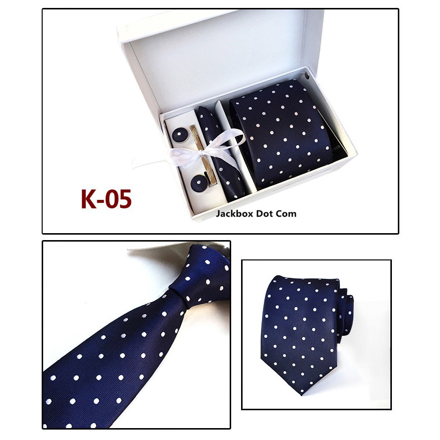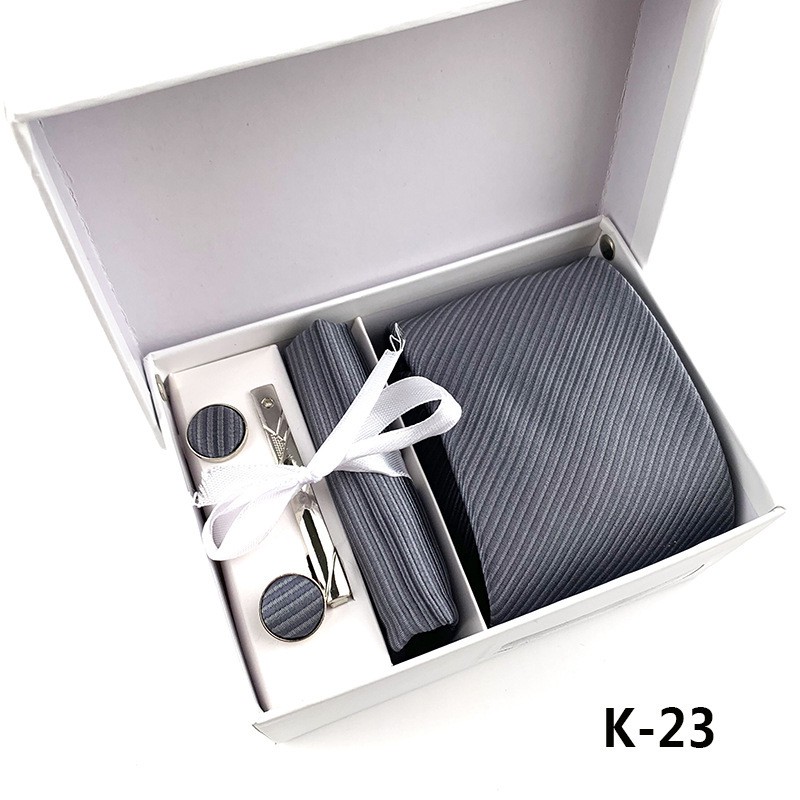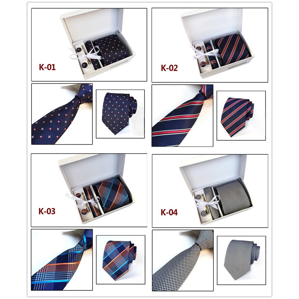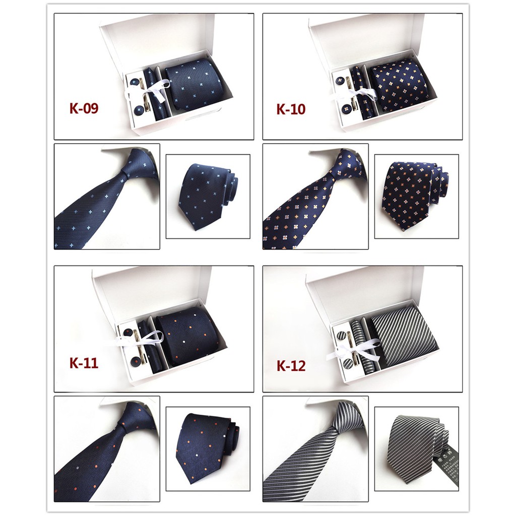 [23 Designs M'sia Ready Stock] 5 Pieces Set Gift Box Business Formal Necktie Handkerchief Cufflink Mens Tie 601